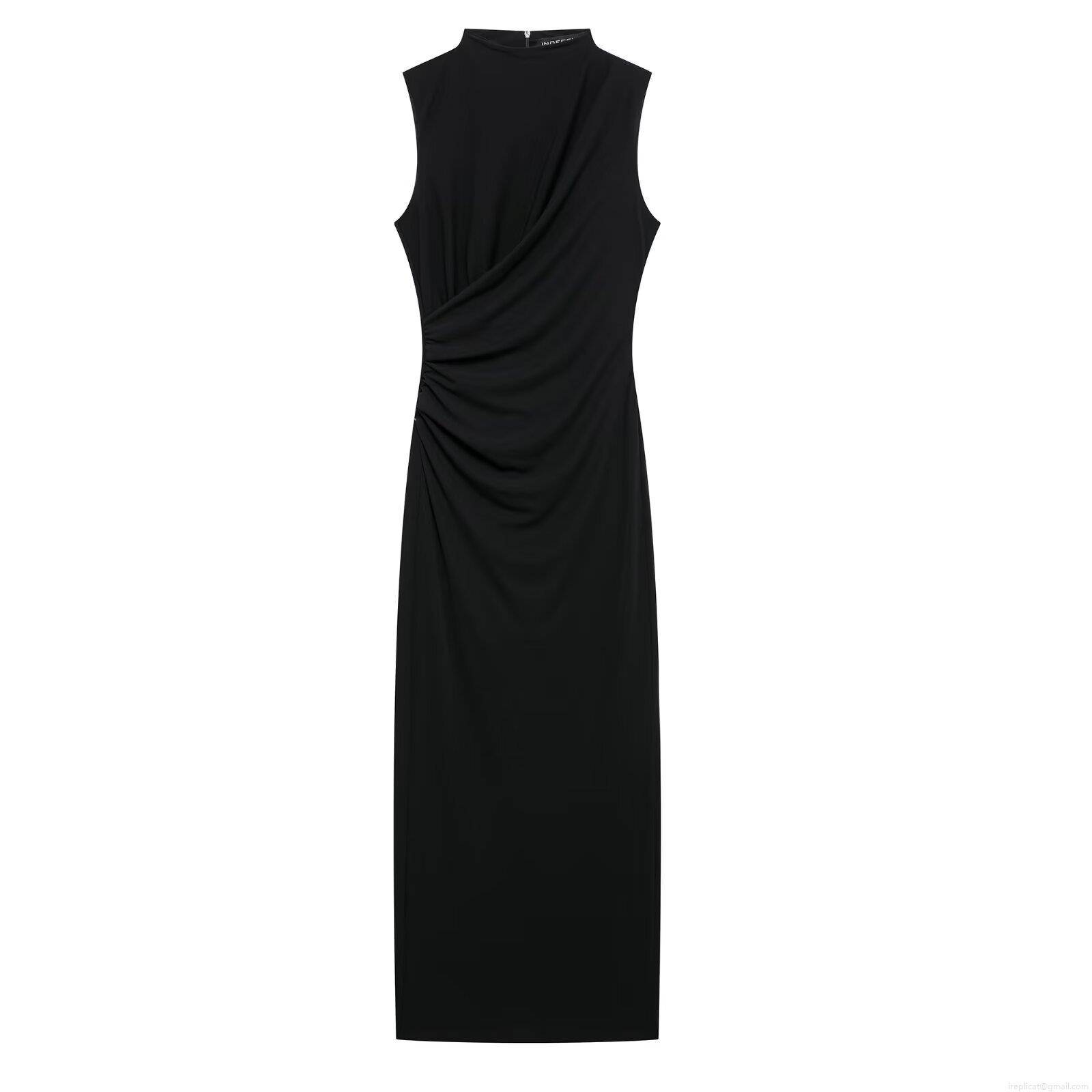 • Women's Sleeveless Maxi Dress Elegant Stand Collar Pleated Bodycon Solid Color Street Style Slim Fit Polyester Long Dress for Summer Party Clubwear