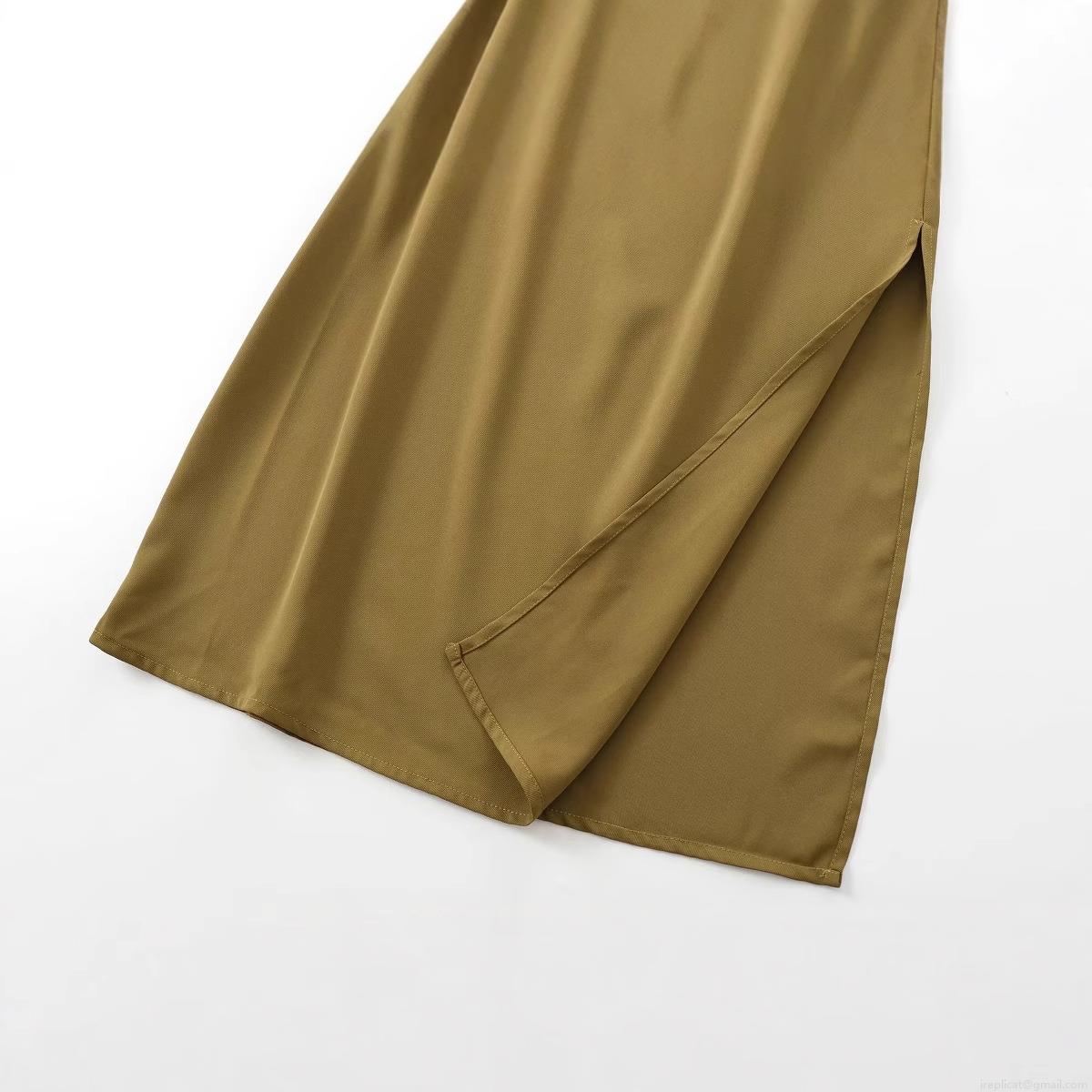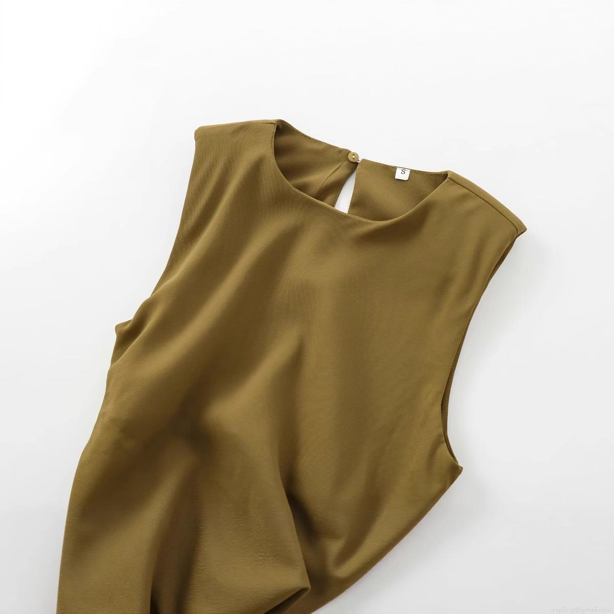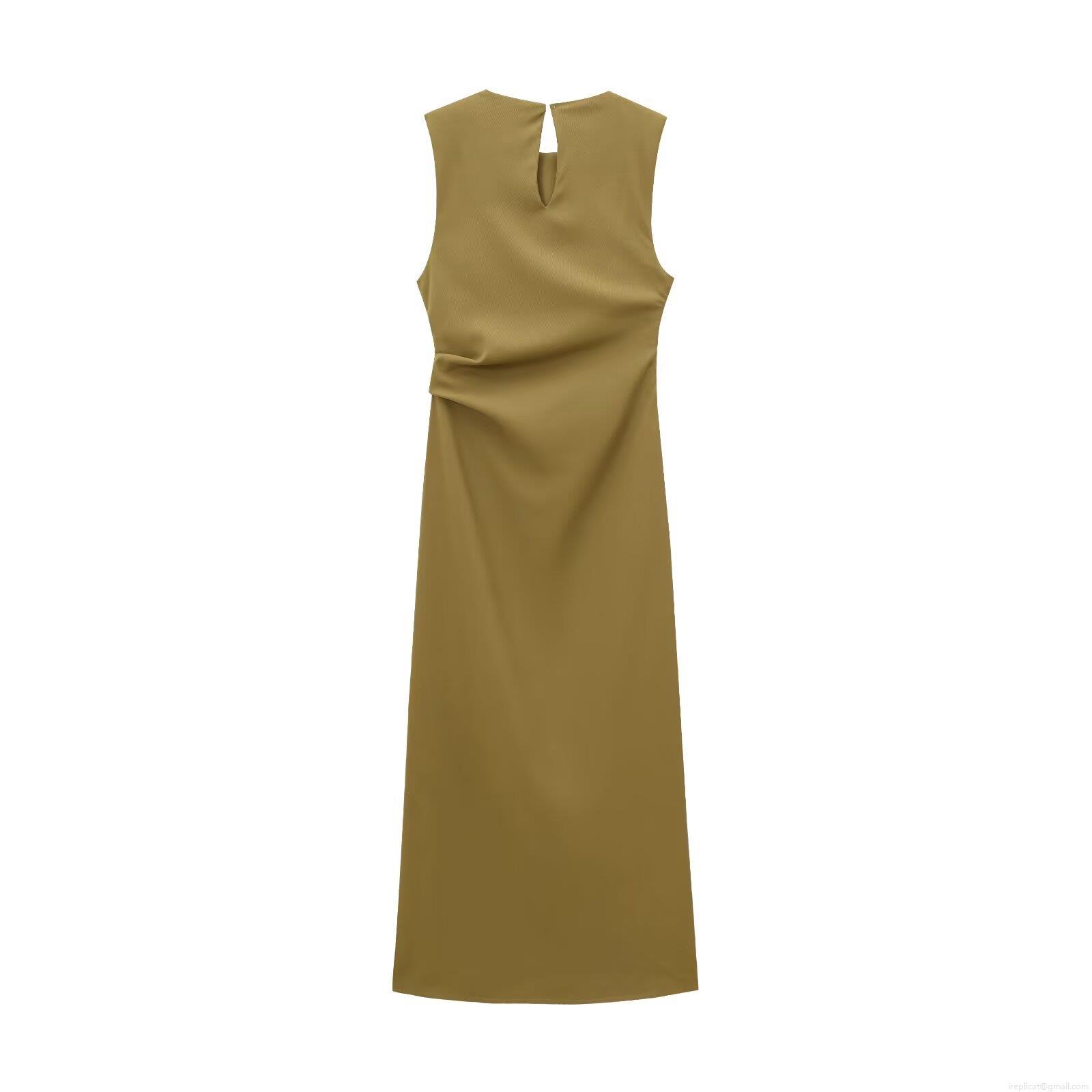• Women's Sleeveless Maxi Dress Polyester Twisted Waist Detail With Shoulder Pads Side Split Elegant Round Neck Solid Color Long Dress For Party Club Wedding Guest Evening Style