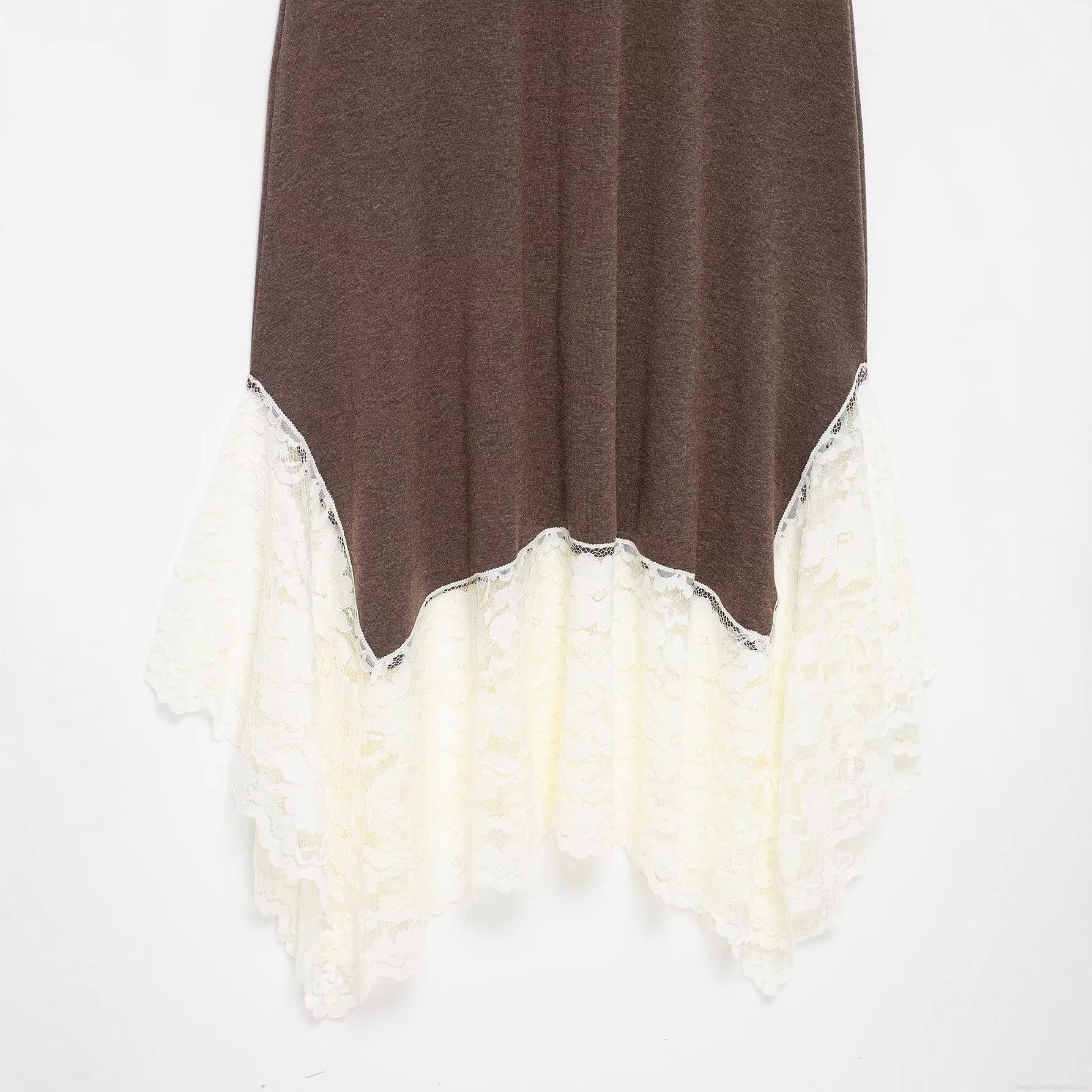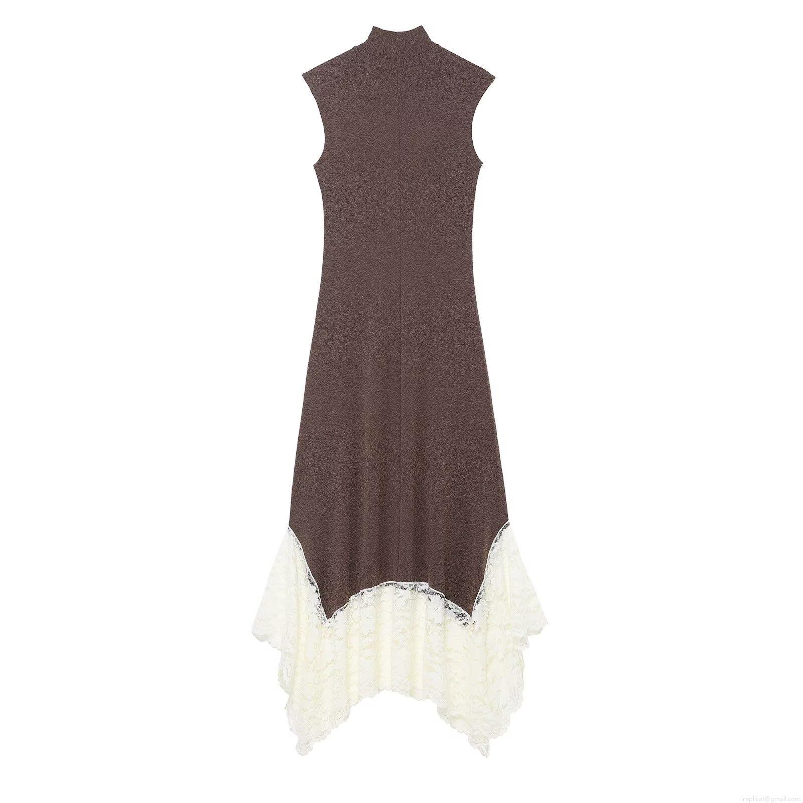 • Women's Sleeveless Mock Neck Knit Maxi Dress With Contrast White Lace Splicing Asymmetric Hem Sexy Party Bodycon Dress For Summer Beach Vacation Elegant Ladies Gown