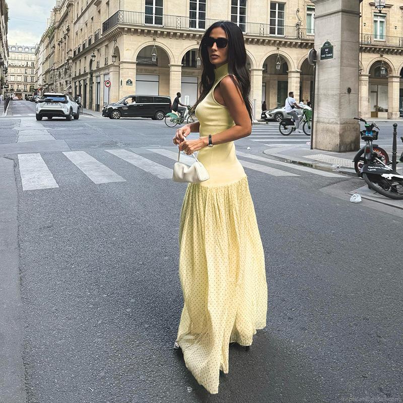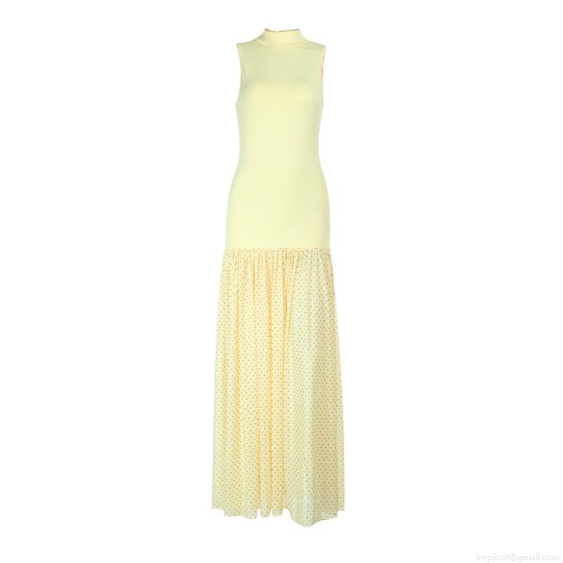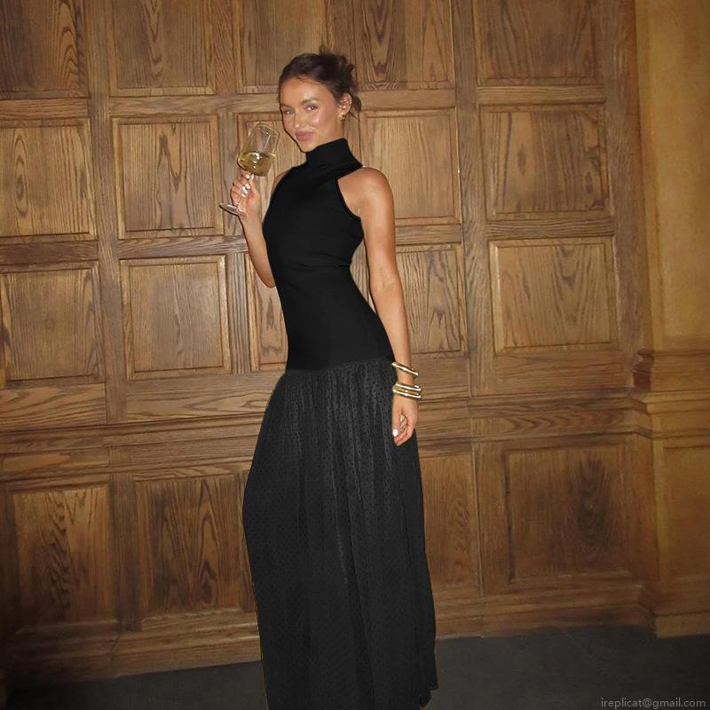 • Women's Sleeveless Mock Neck Maxi Dress Polyester Ribbed Knit Splicing Polka Dot Mesh Spliced Long Dress For Party Vacation Sexy Elegant Lady
