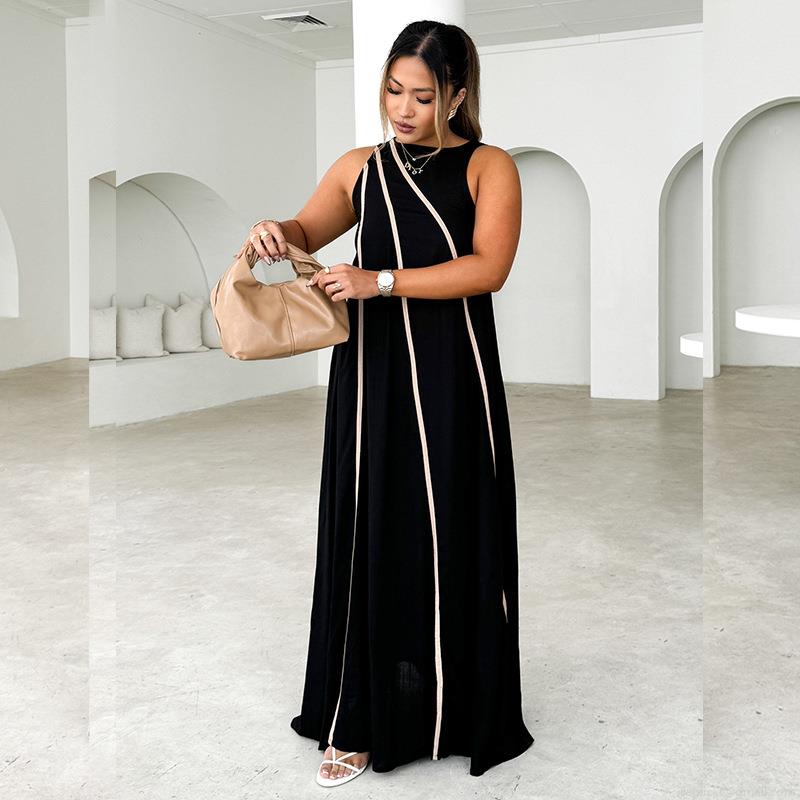 • Women's Sleeveless Patchwork Diagonal Stripe Maxi Dress Summer Casual Loose Round Neck Polyester Long Dress For Vacation Party Chic Elegant Lady