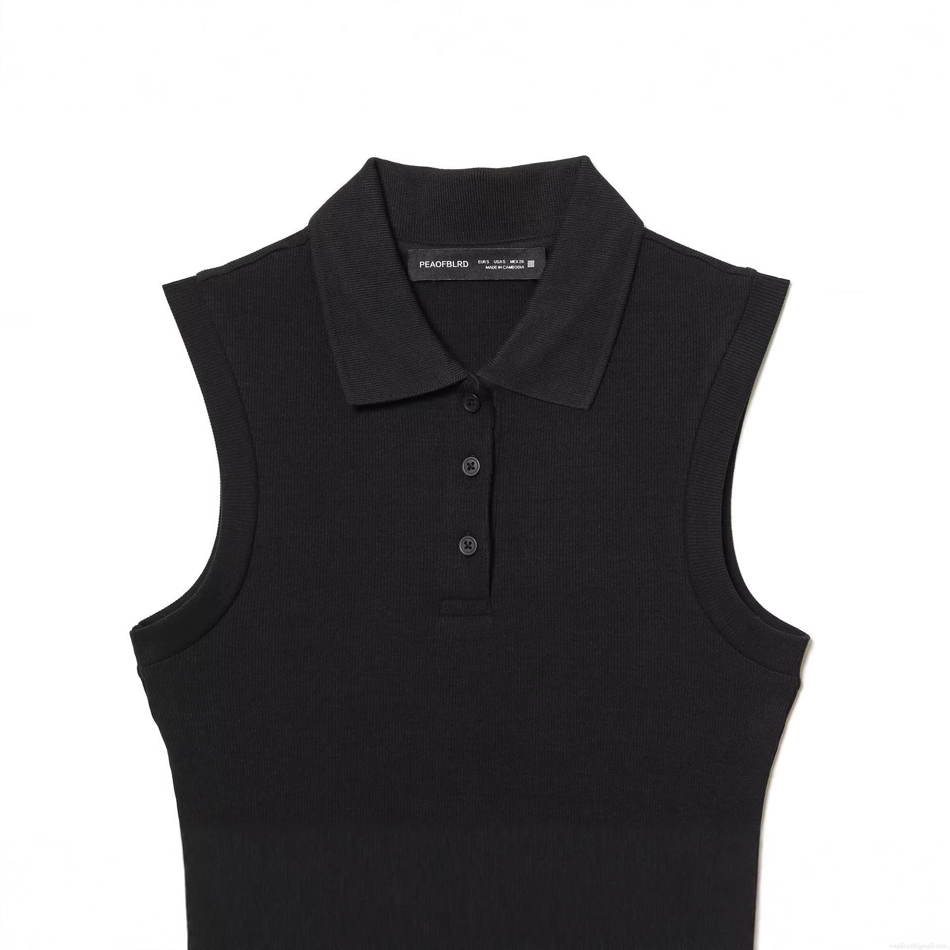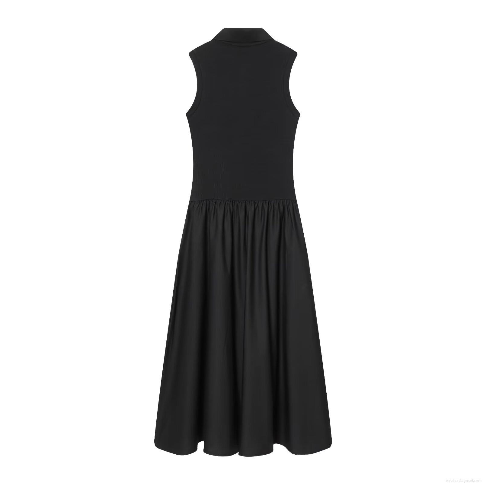 • Women's Sleeveless Polo Neck Knit Patchwork A-Line Maxi Dress Elegant High Waist Button Down Front Solid Color Polyester Blend Long Dress For Summer Casual Party Streetwear
