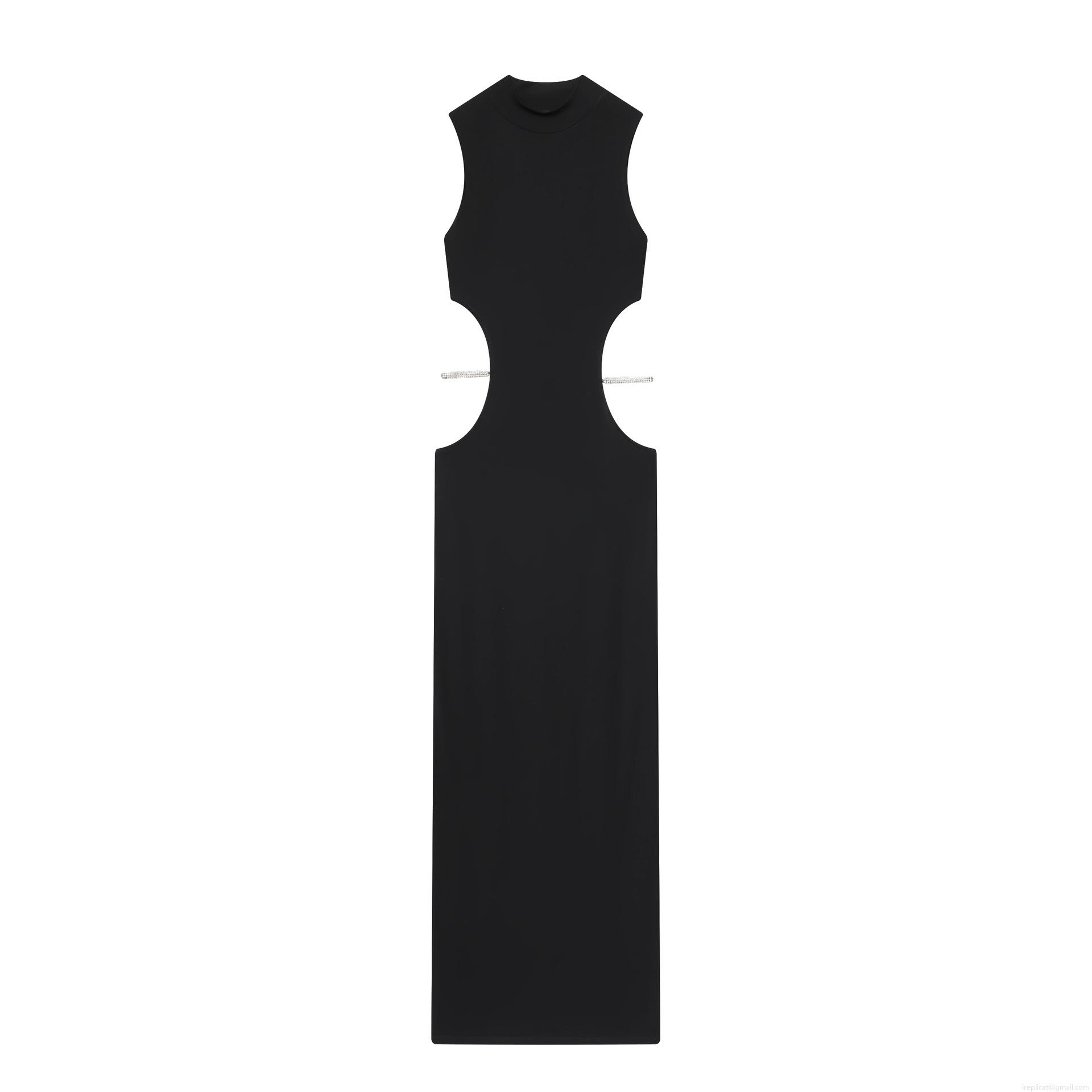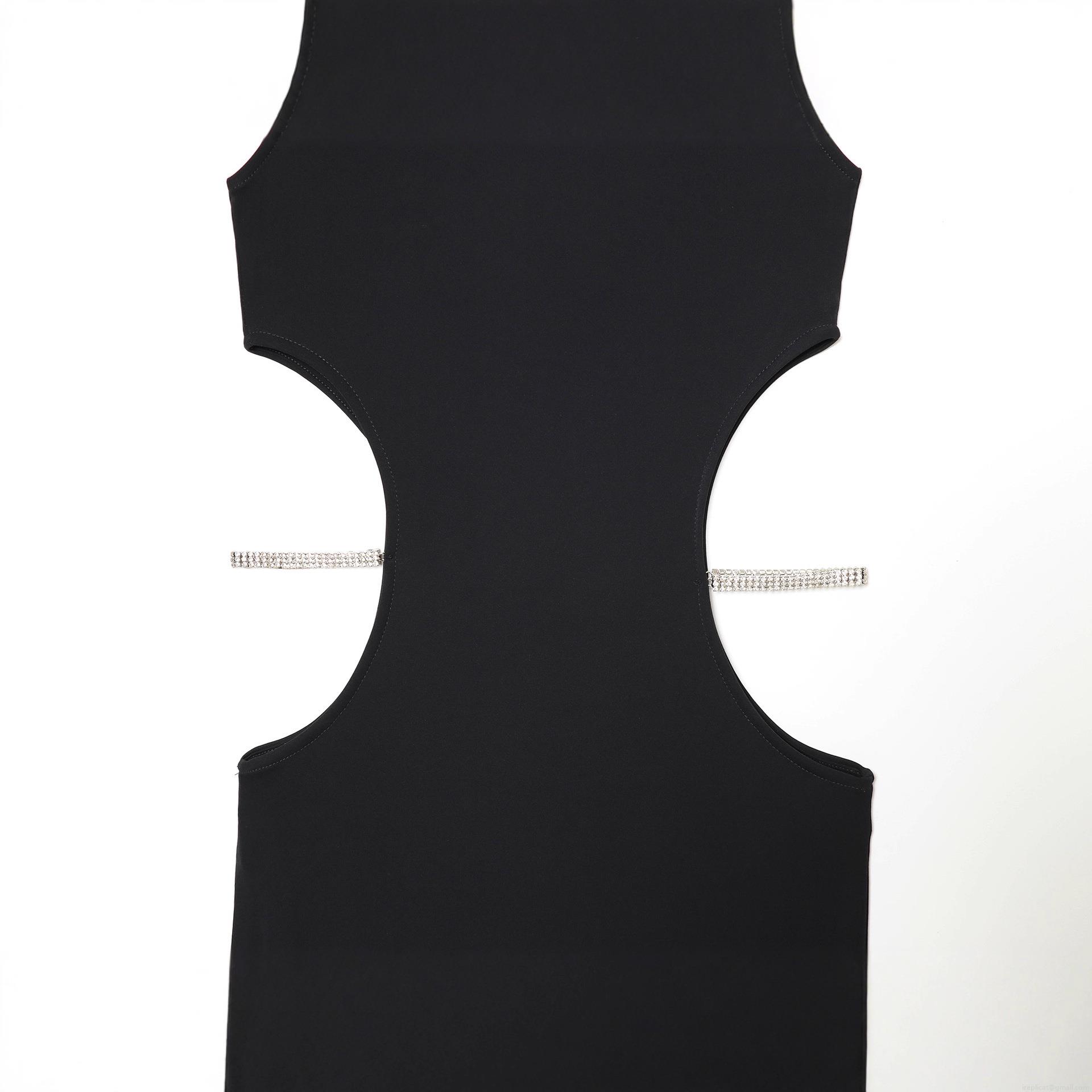 • Women's Sleeveless Round Neck Cut-out Waist Dress With Rhinestones Solid Color Sexy Slim Fit Polyester Maxi Party Dress