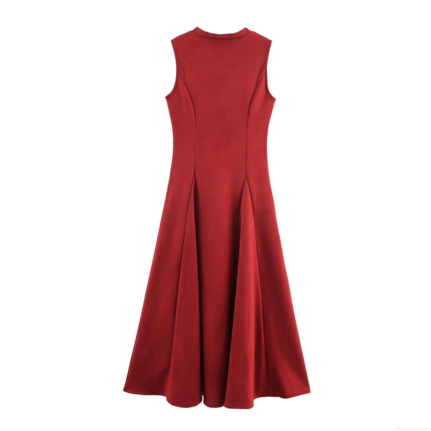 • Women's Sleeveless Round Neck Maxi Dress Zipper Front High Waist A-Line Swing Party Dress Elegant Suede-Like Polyester Commute Gown For Ladies