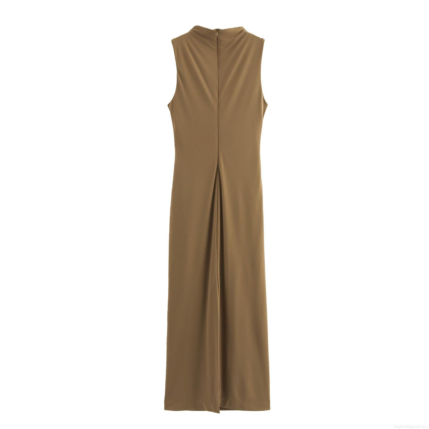 • Women's Sleeveless Ruched Maxi Dress Sexy Slim Fit Mock Neck Knitted Evening Party Long Dress Elegant Bodycon Pleated Dress For Ladies