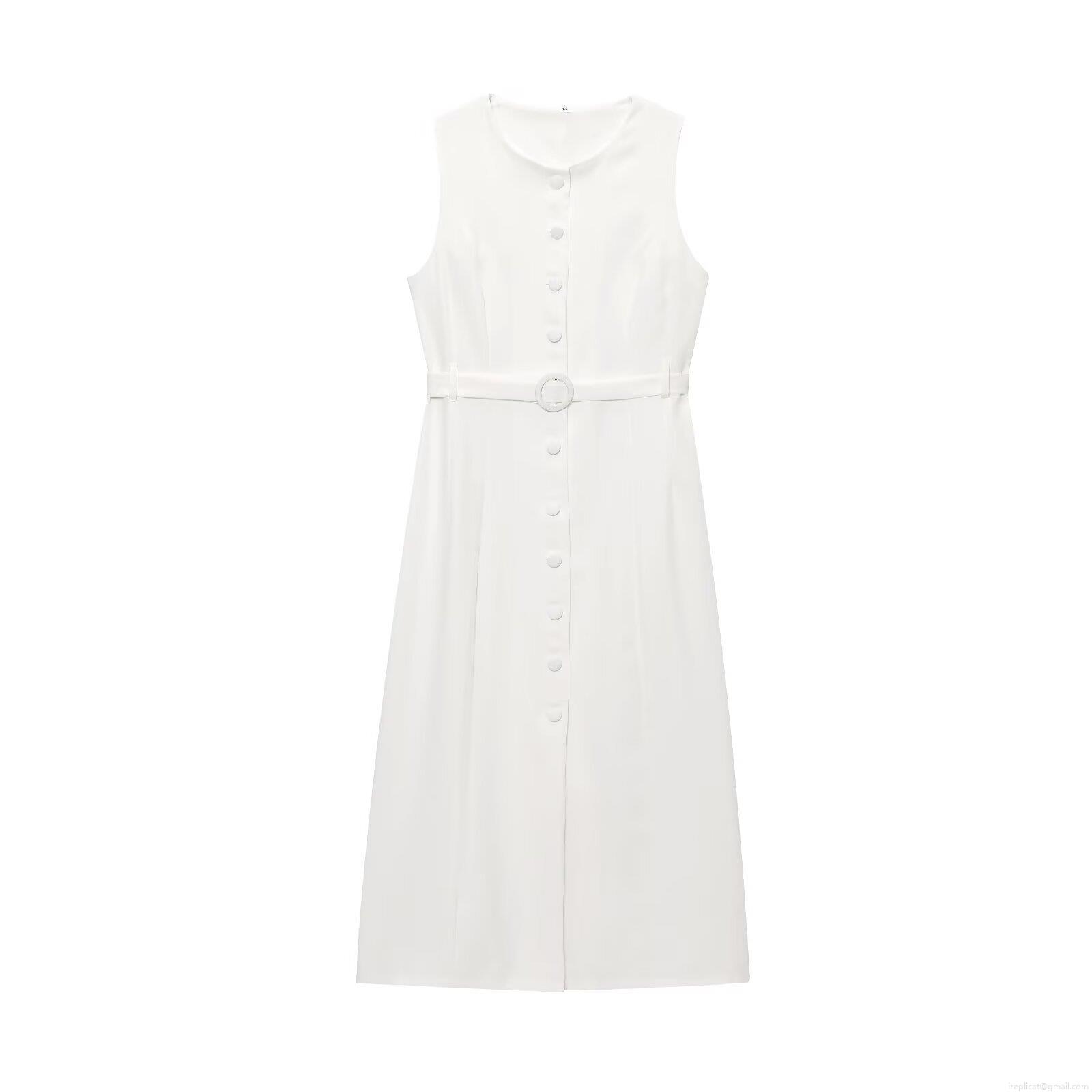 • Women's Sleeveless Single-Breasted Maxi Dress Polyester Solid Color Elegant Slim Sundress With Belt For Party Dating Ladies Casual Elegant Clothing