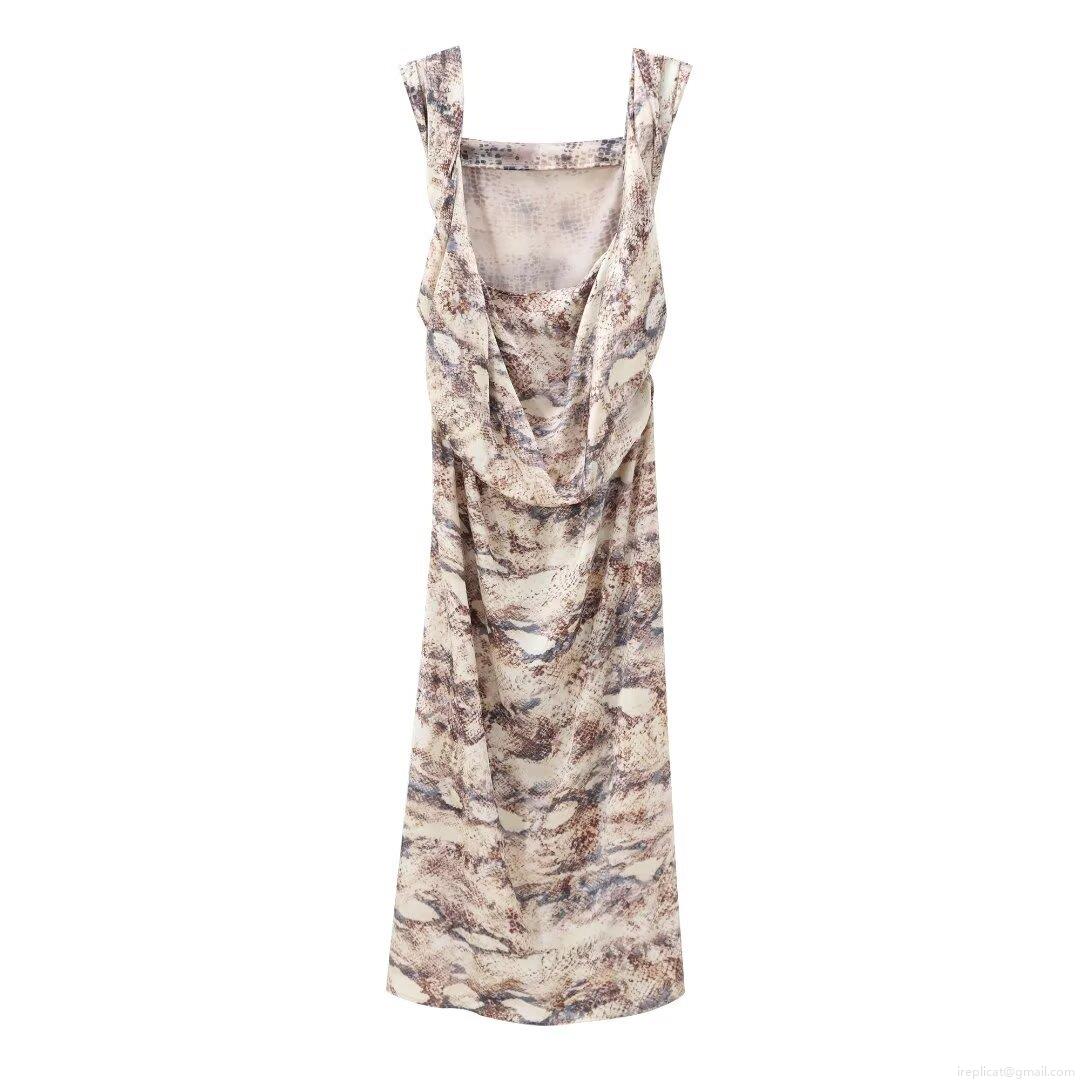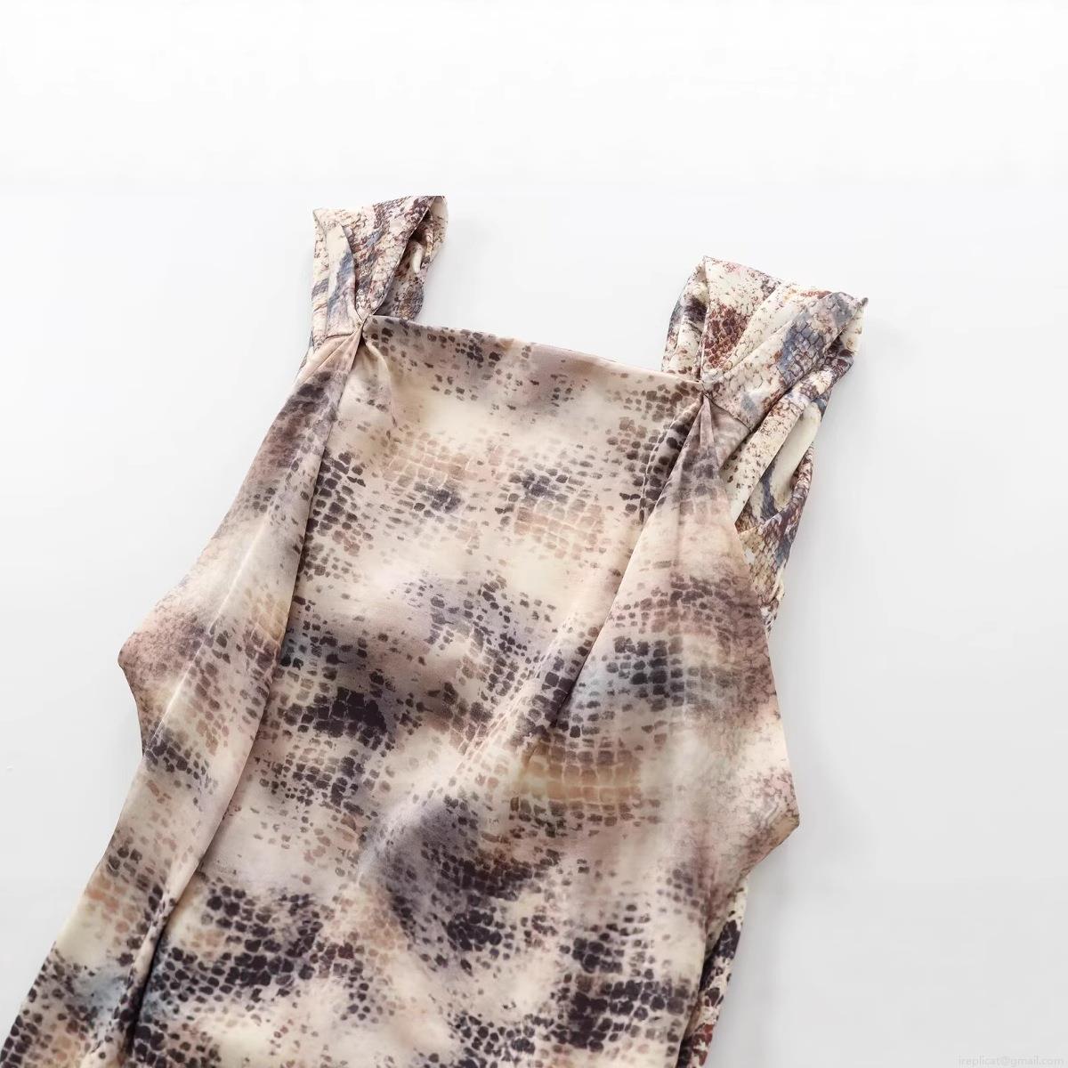 Snake Pattern, Printing, Backless, Animal Prints, Square Collar, Folds And Drape
