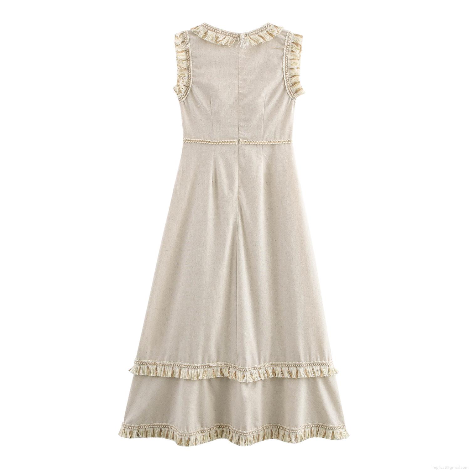 • Women's Sleeveless V-Neck Fringe Tassel Maxi Dress Bohemian Holiday Beach Wear Polyester Cotton Blend Long Sundress For Ladies