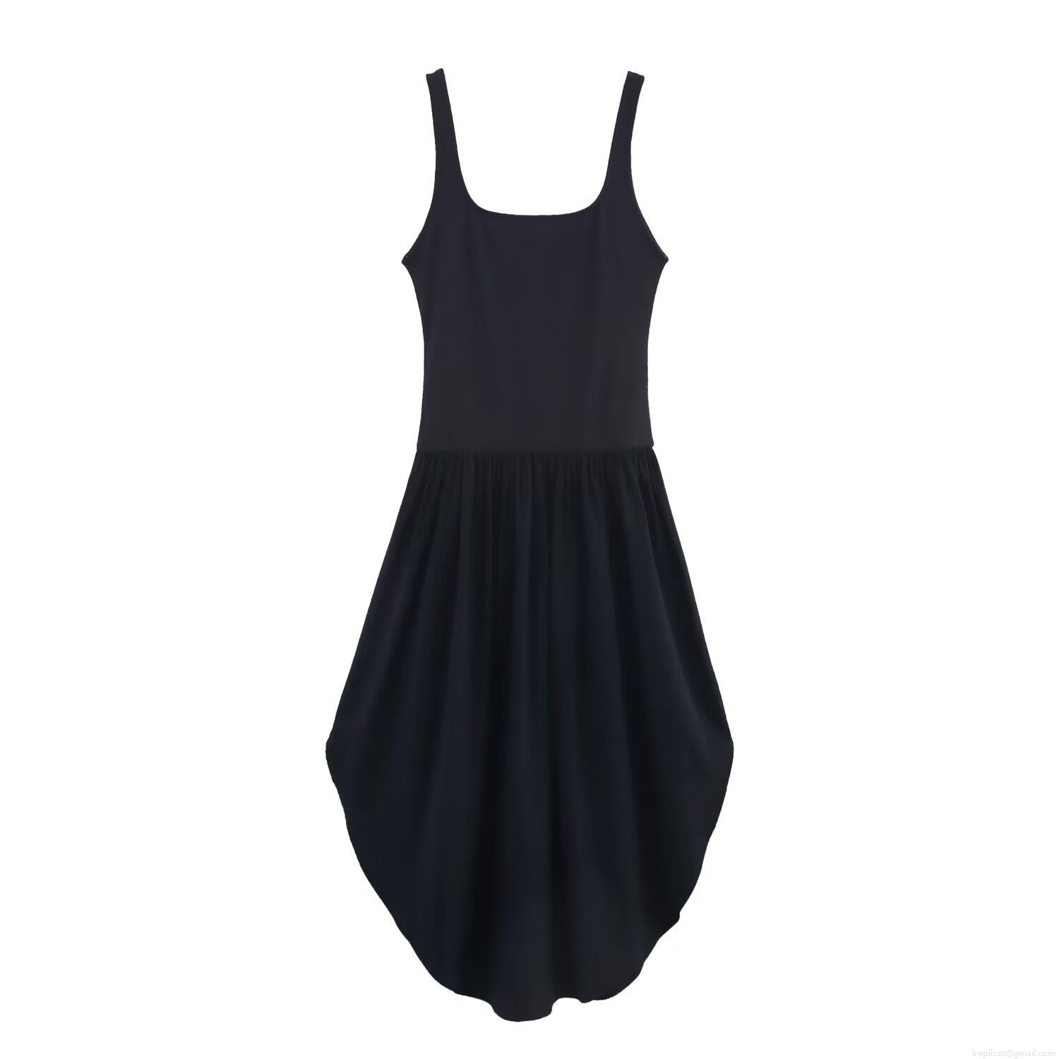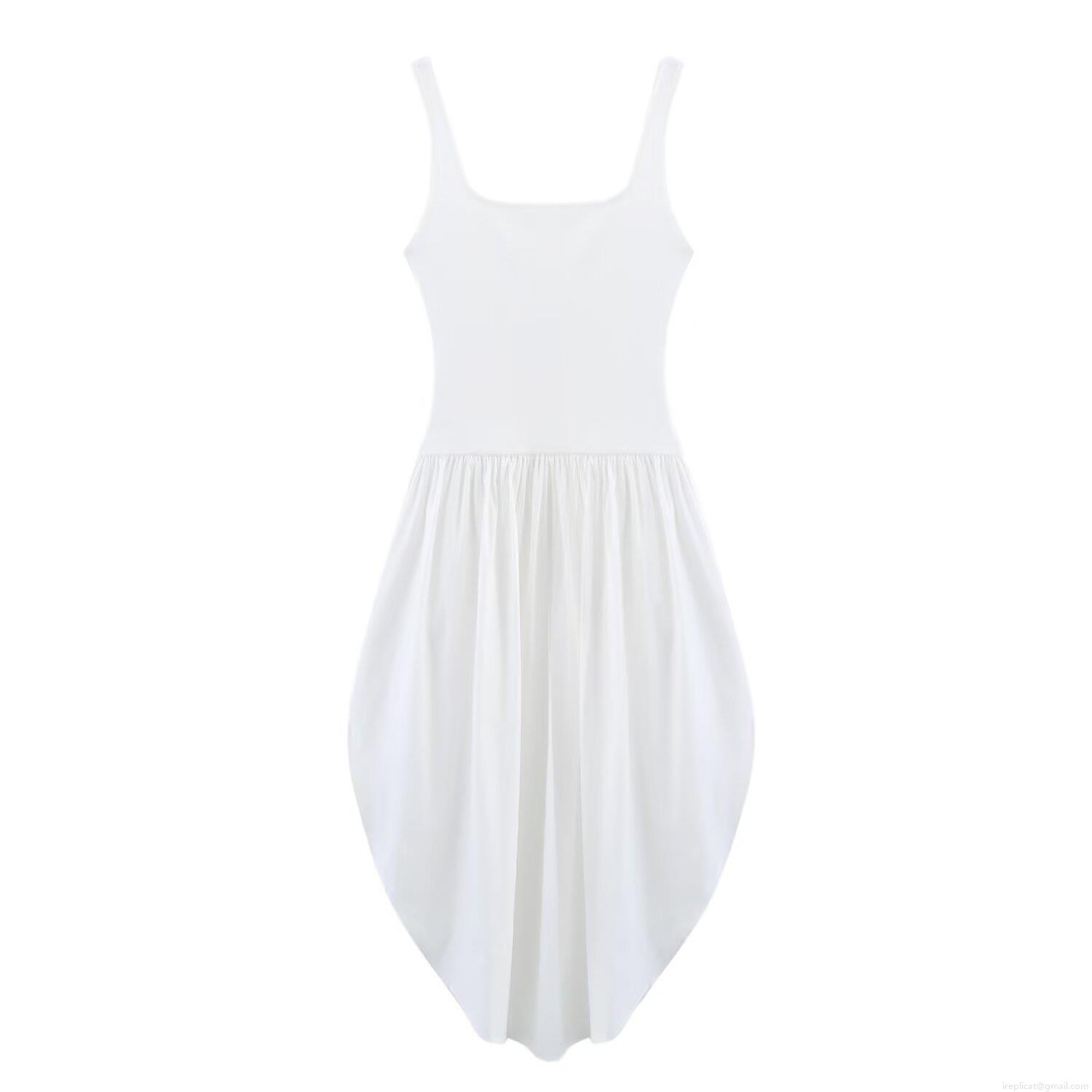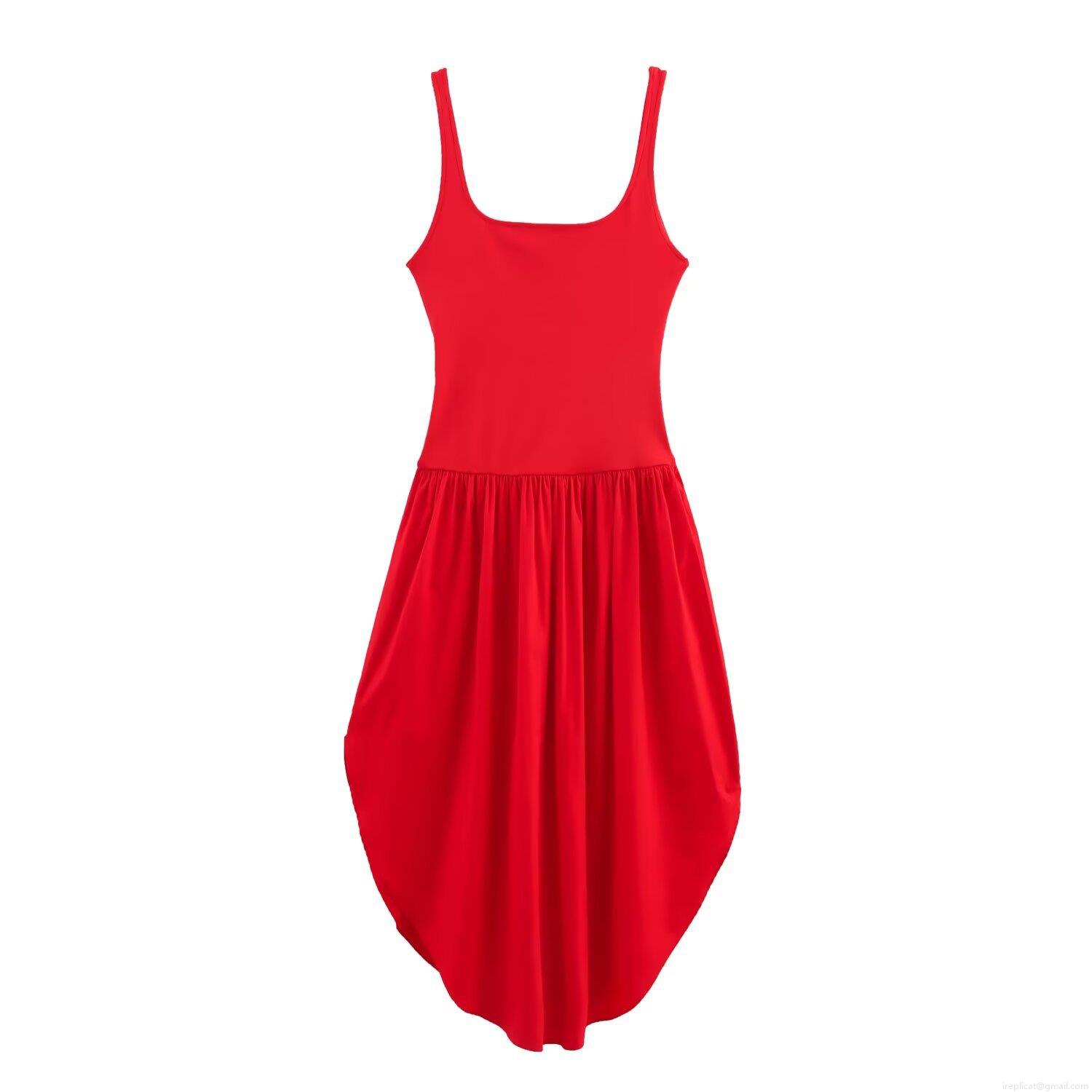 • Women's Slim Fit Suspender Maxi Dress Elegant U-Neck Sleeveless Polyester Ribbed Knit Pleated Irregular Hem Dress For Summer Party Fashion Solid Color Evening Gown
