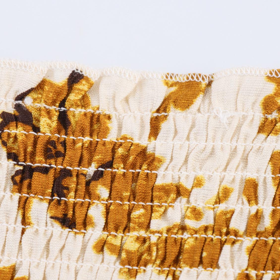 Leaf, Floral Pattern, Ruffles, Plants And Flowers, Slab, Puff Sleeves, Square Collar, Elastic Pleats