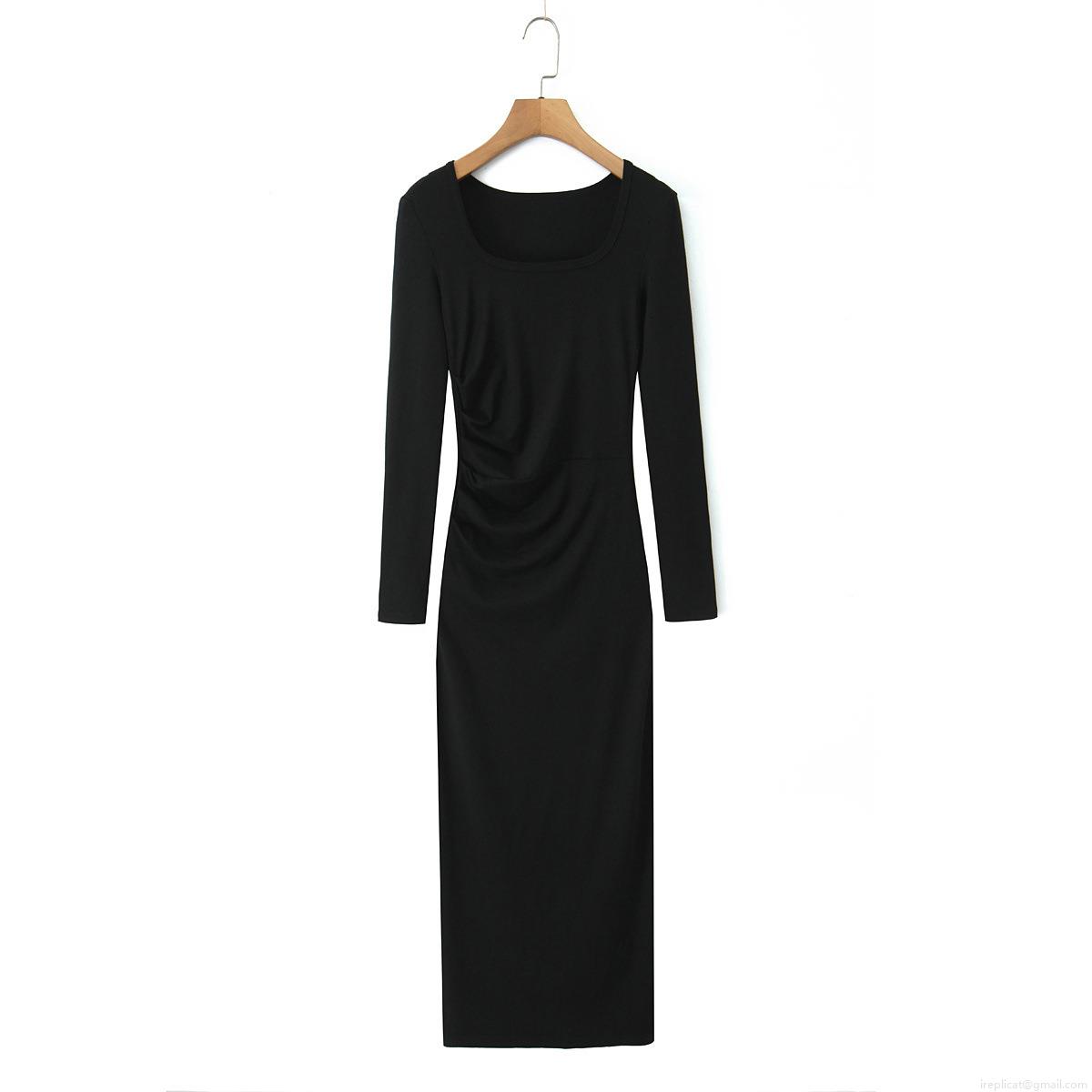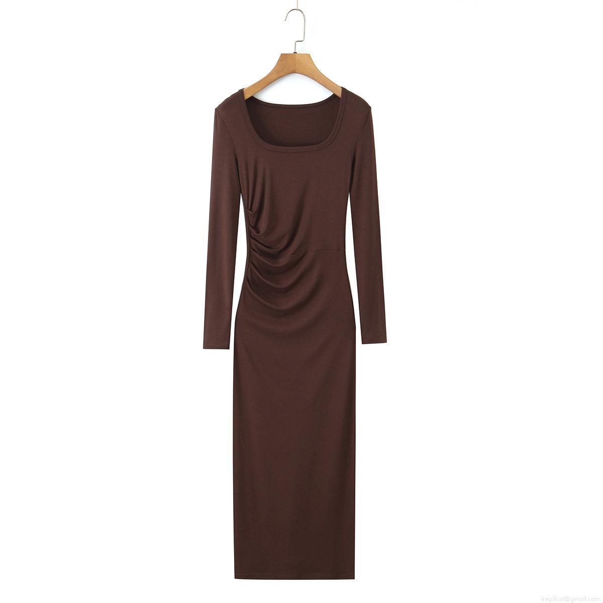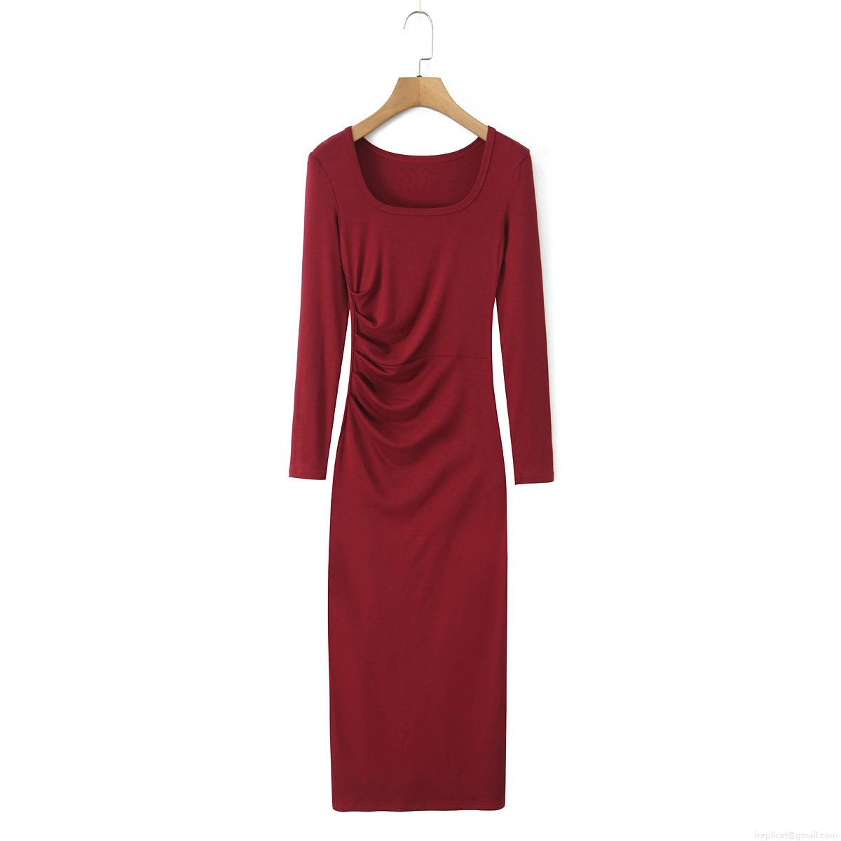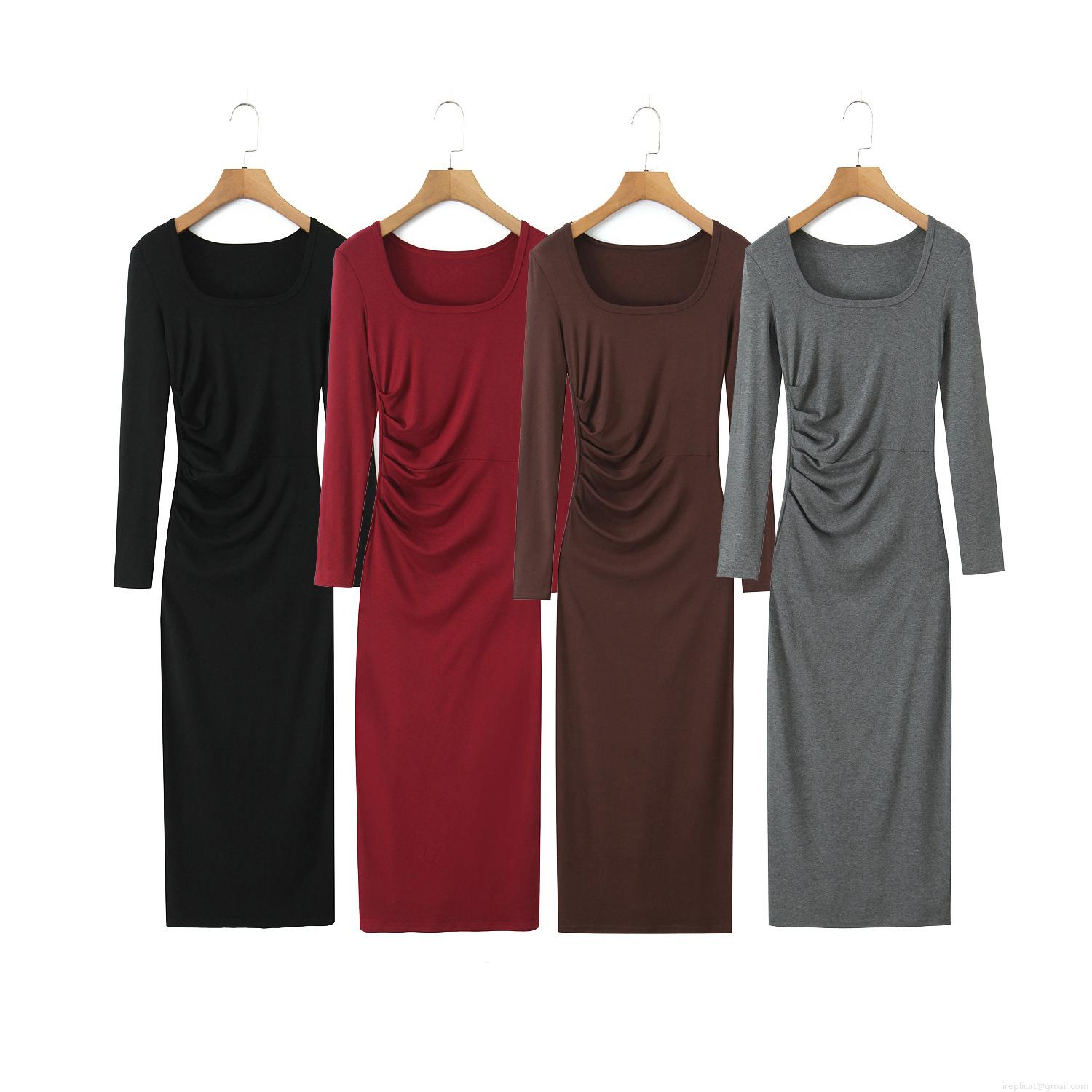 • Women's Square Neck Ruched Bodycon Maxi Dress Long Sleeve Ribbed Knit Solid Color Slim Fit Rayon Spandex Streetwear Casual Long Dress