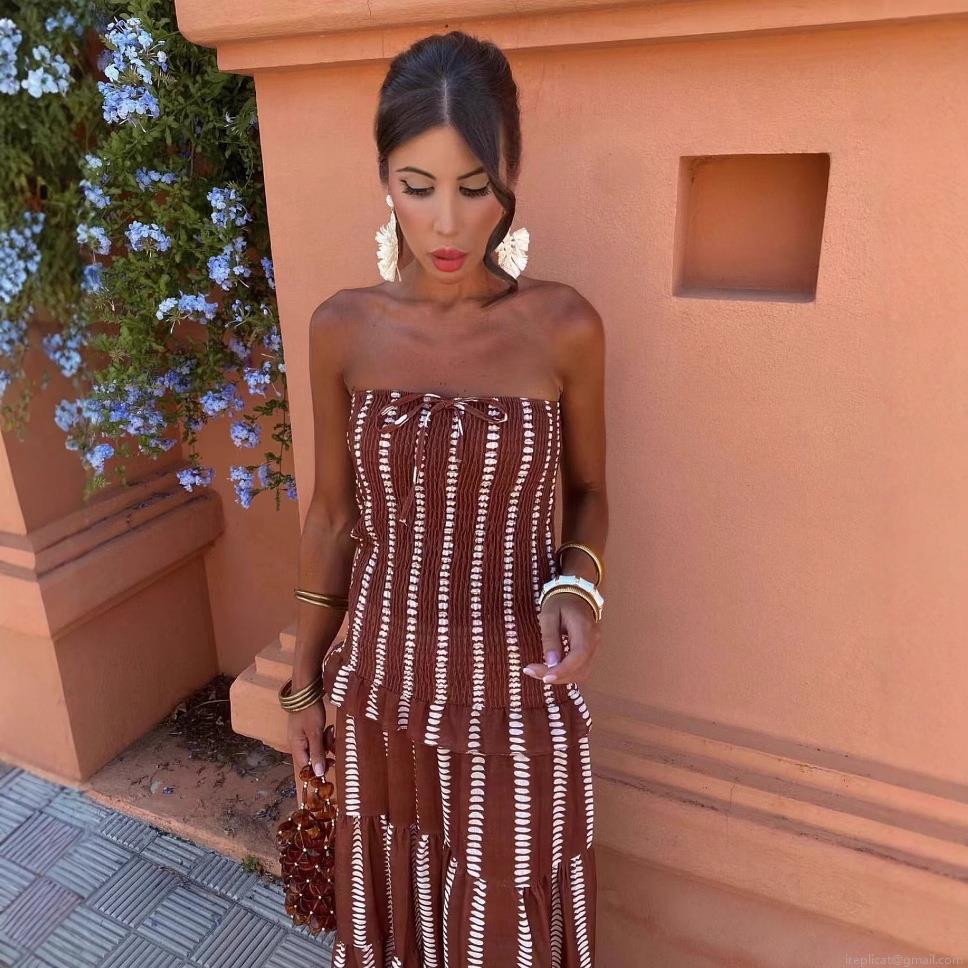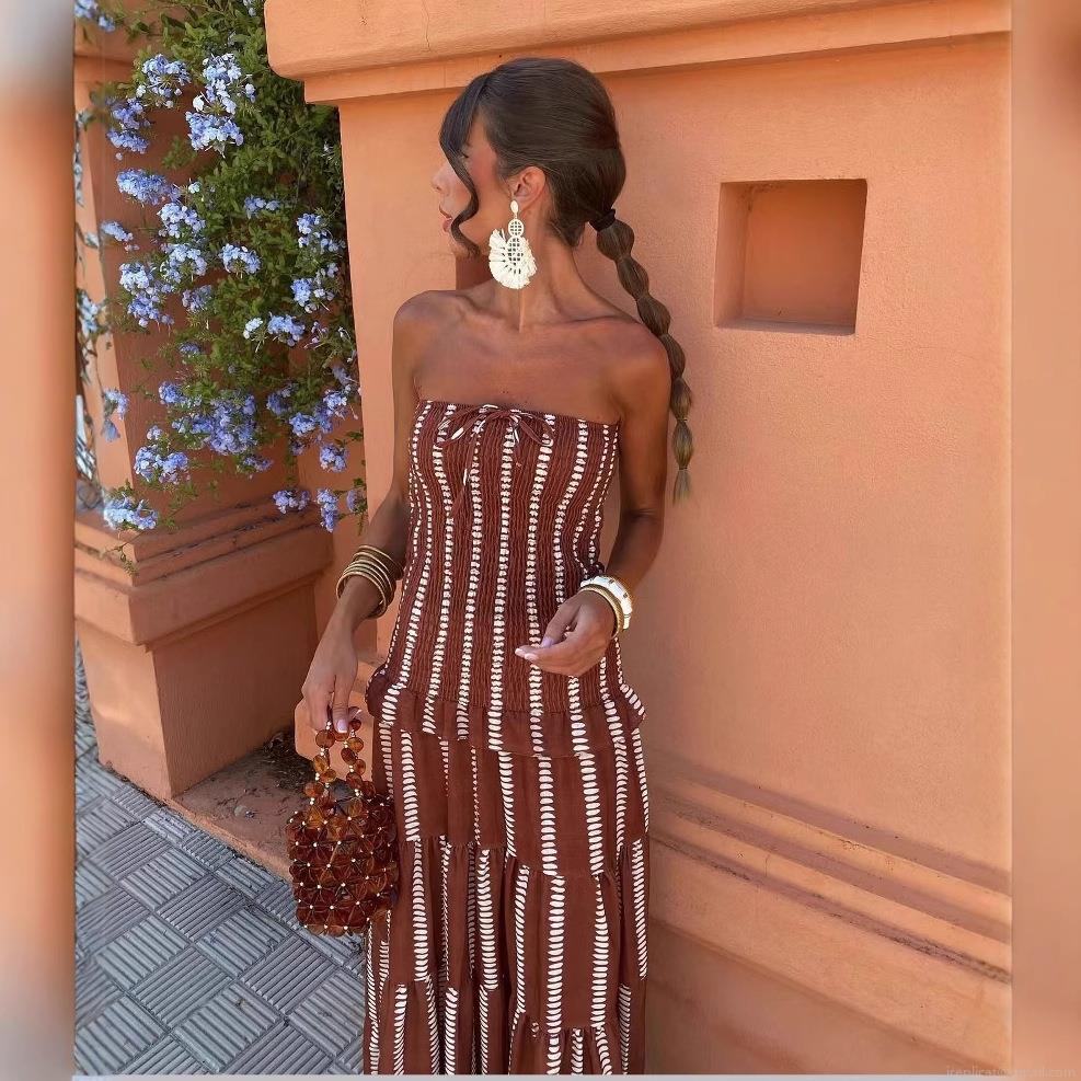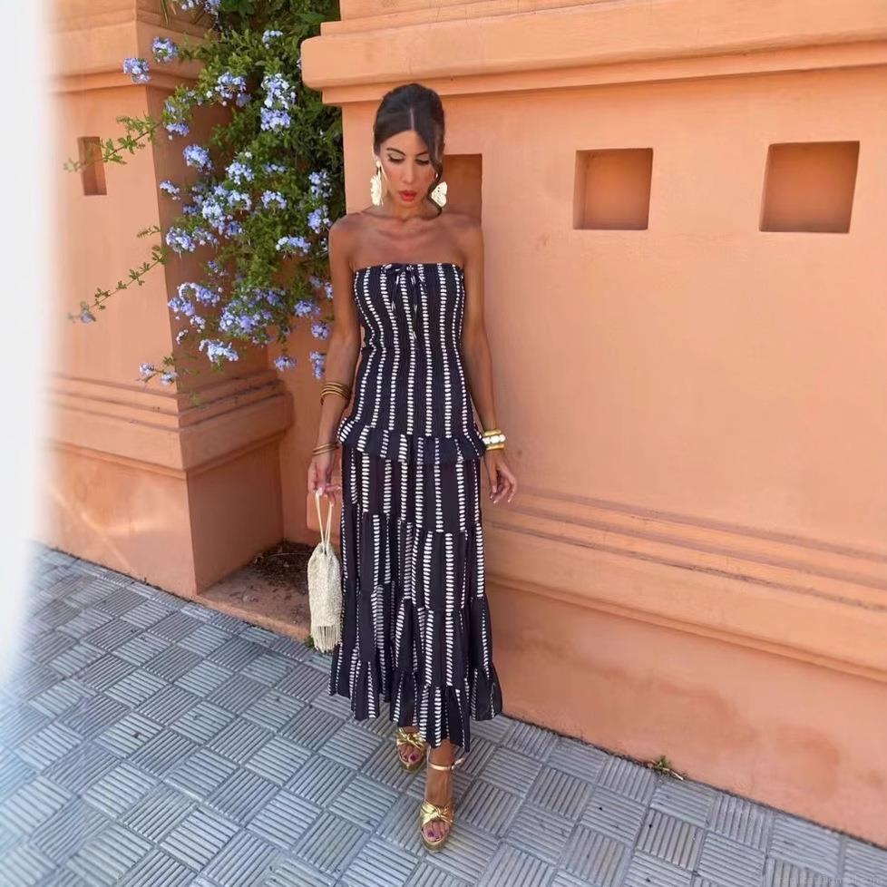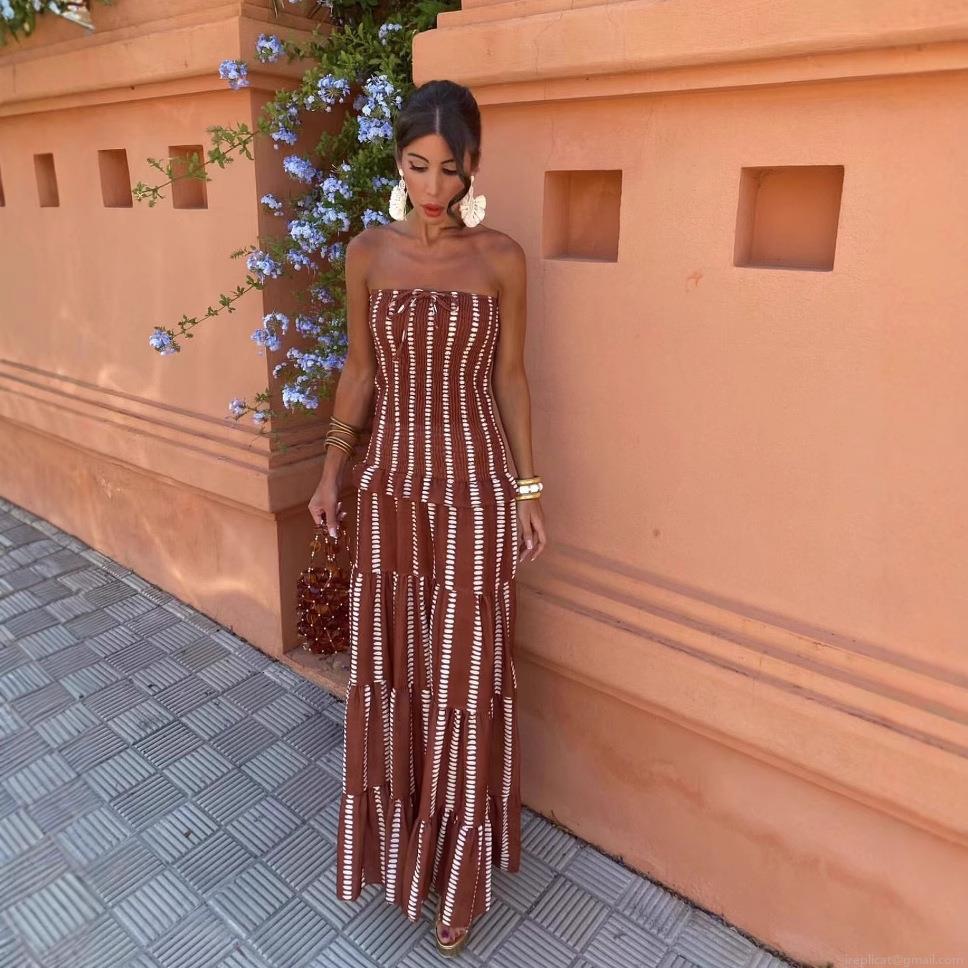 • Women's Strapless Striped Maxi Dress Bohemian Tiered Ruffle Long Dress Summer Vacation Beach Party Polyester Strapless Tube Top Dress