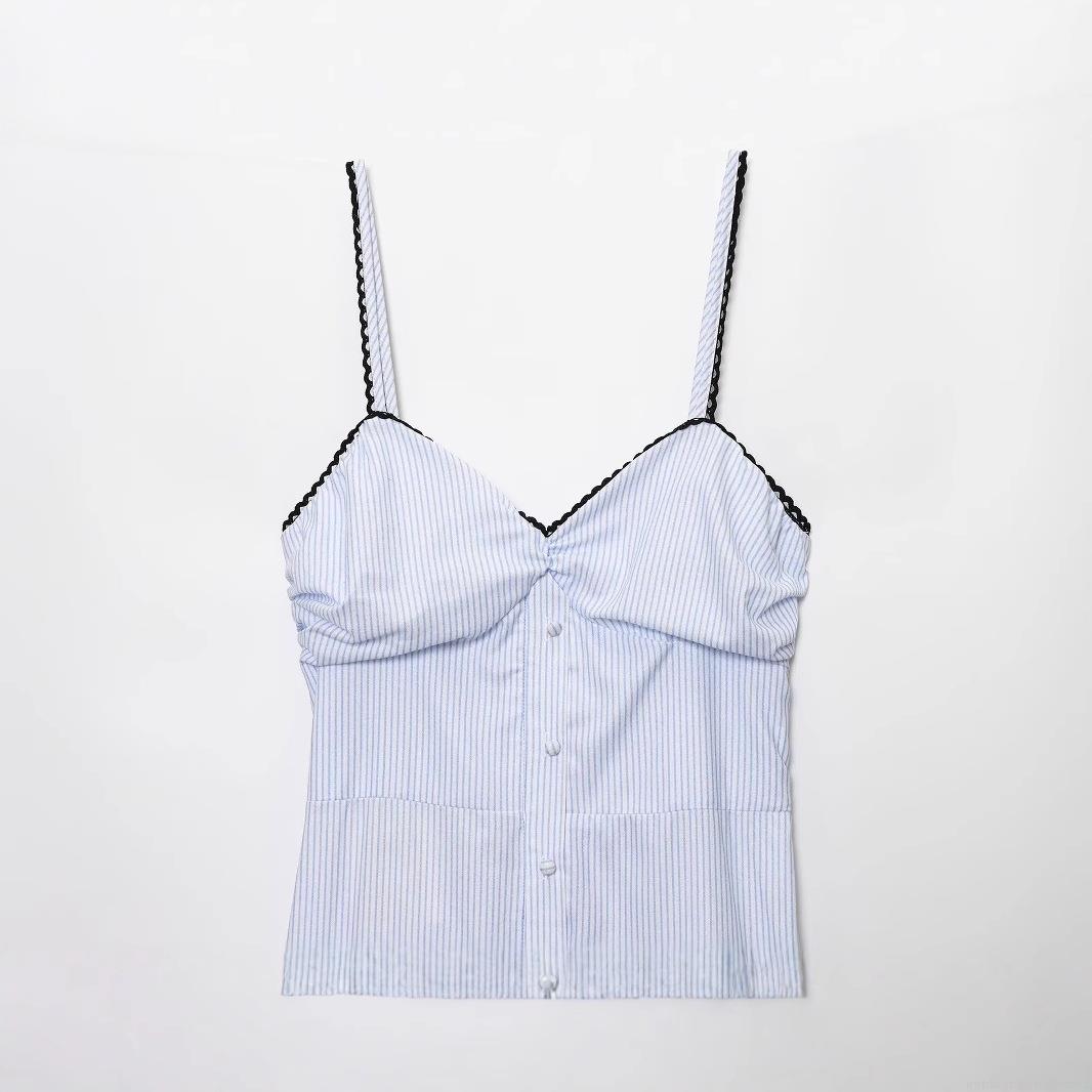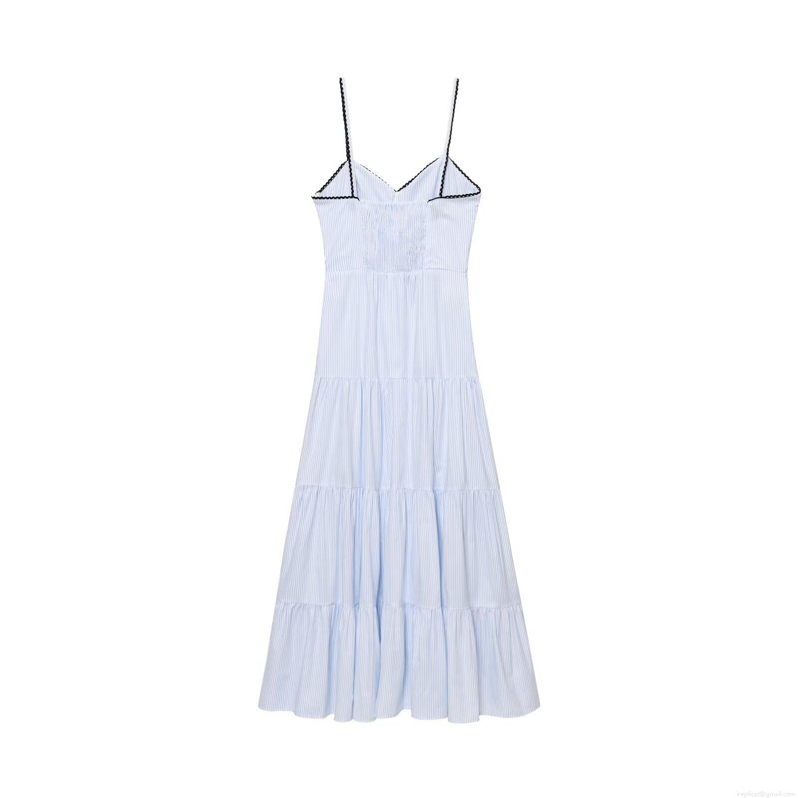 • Women's Striped Camisole Maxi Dress Blue White Vertical Stripe Tiered Long Dress With Black Lace Trim For Summer Beach Vacation Party Elegant Lady Clothing