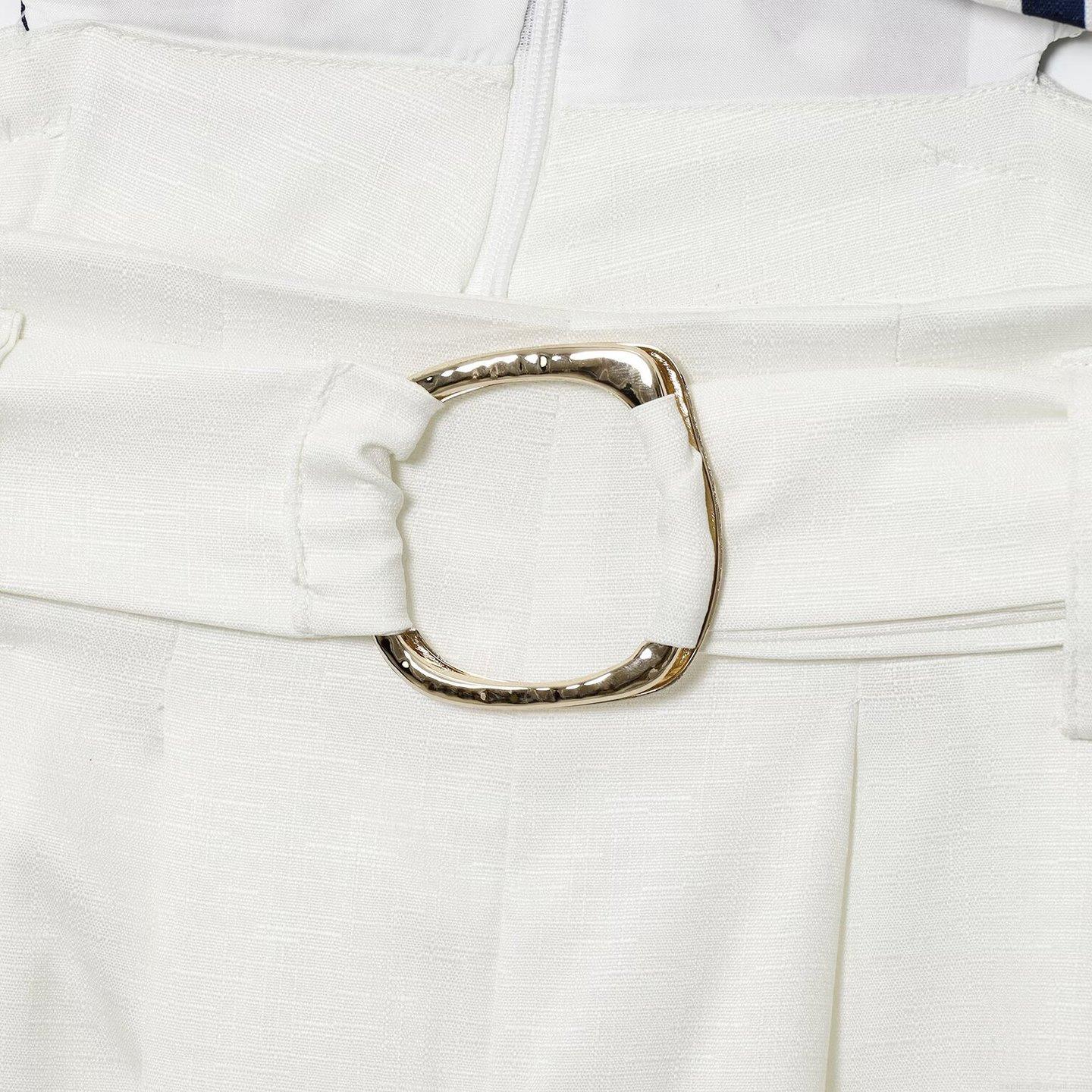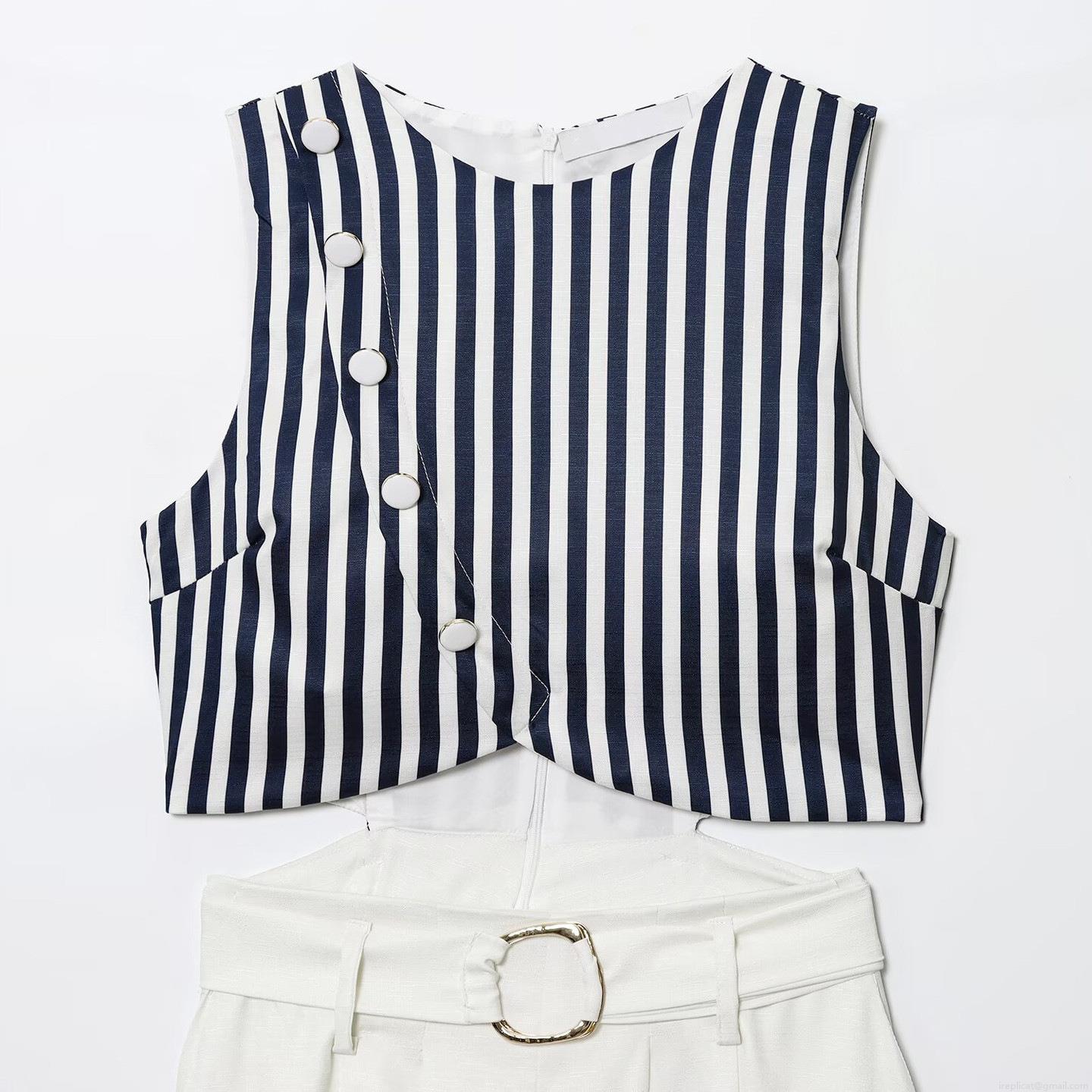 Splice, Stripe, Belt, Button Decoration, Cropped Cut