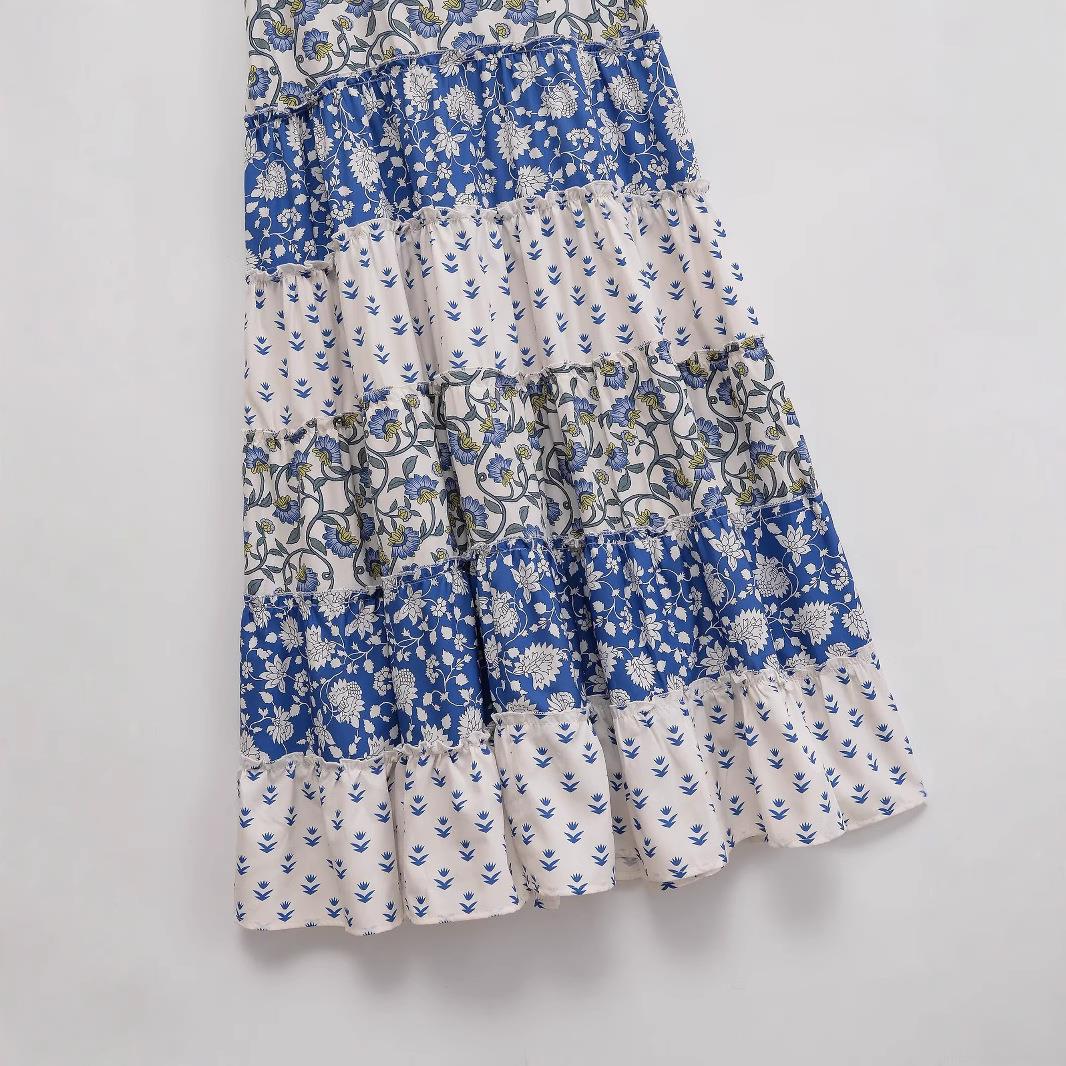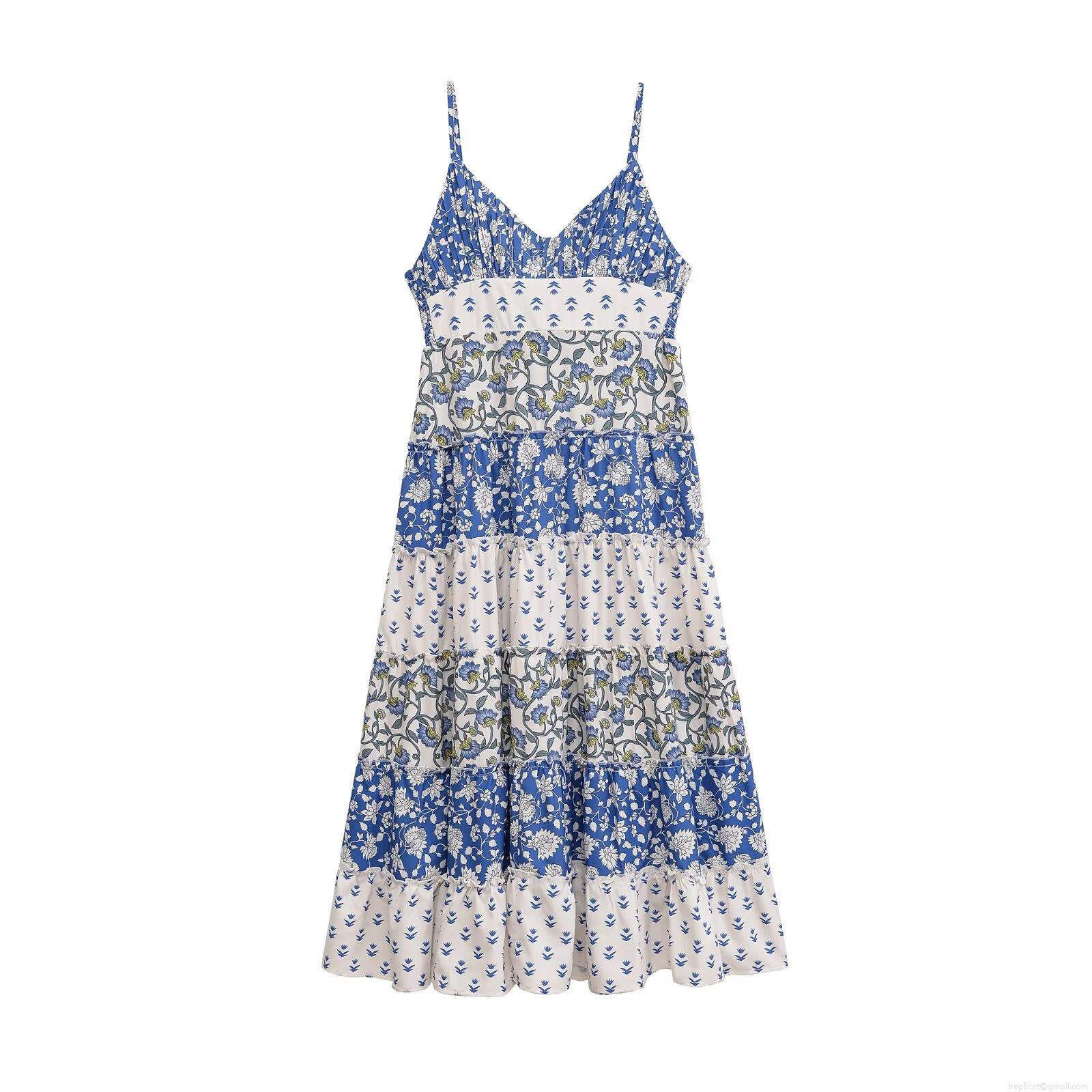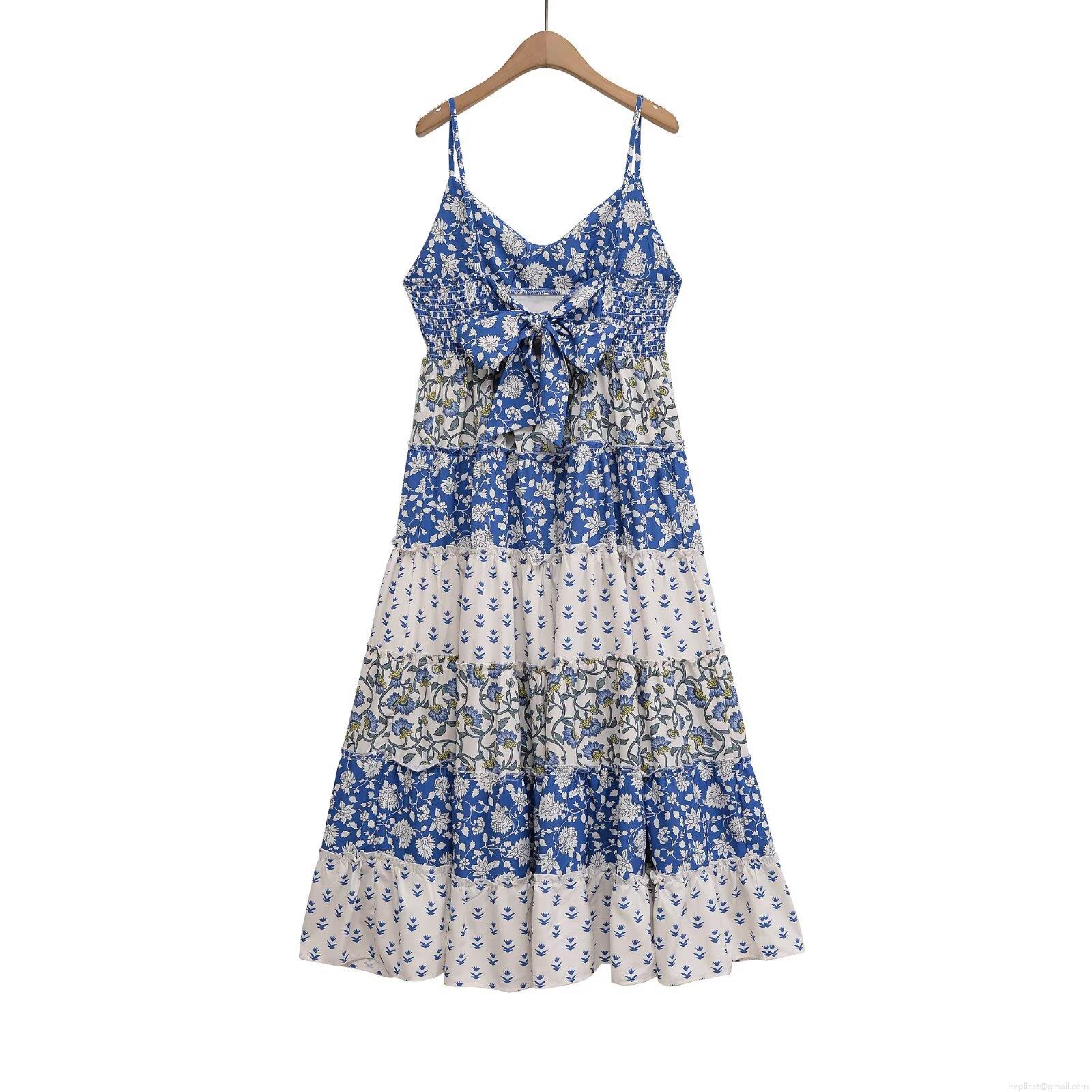 • Women's Summer Floral Print Tiered Cami Dress Bow Decor V Neck Layered Patchwork Boho Maxi Sundress For Holiday Beach Casual Streetwear