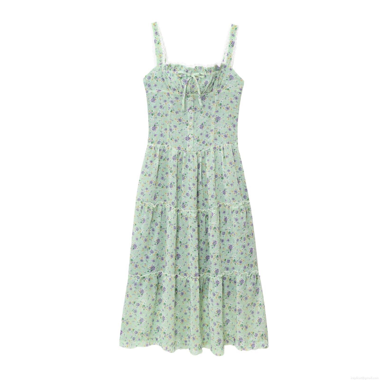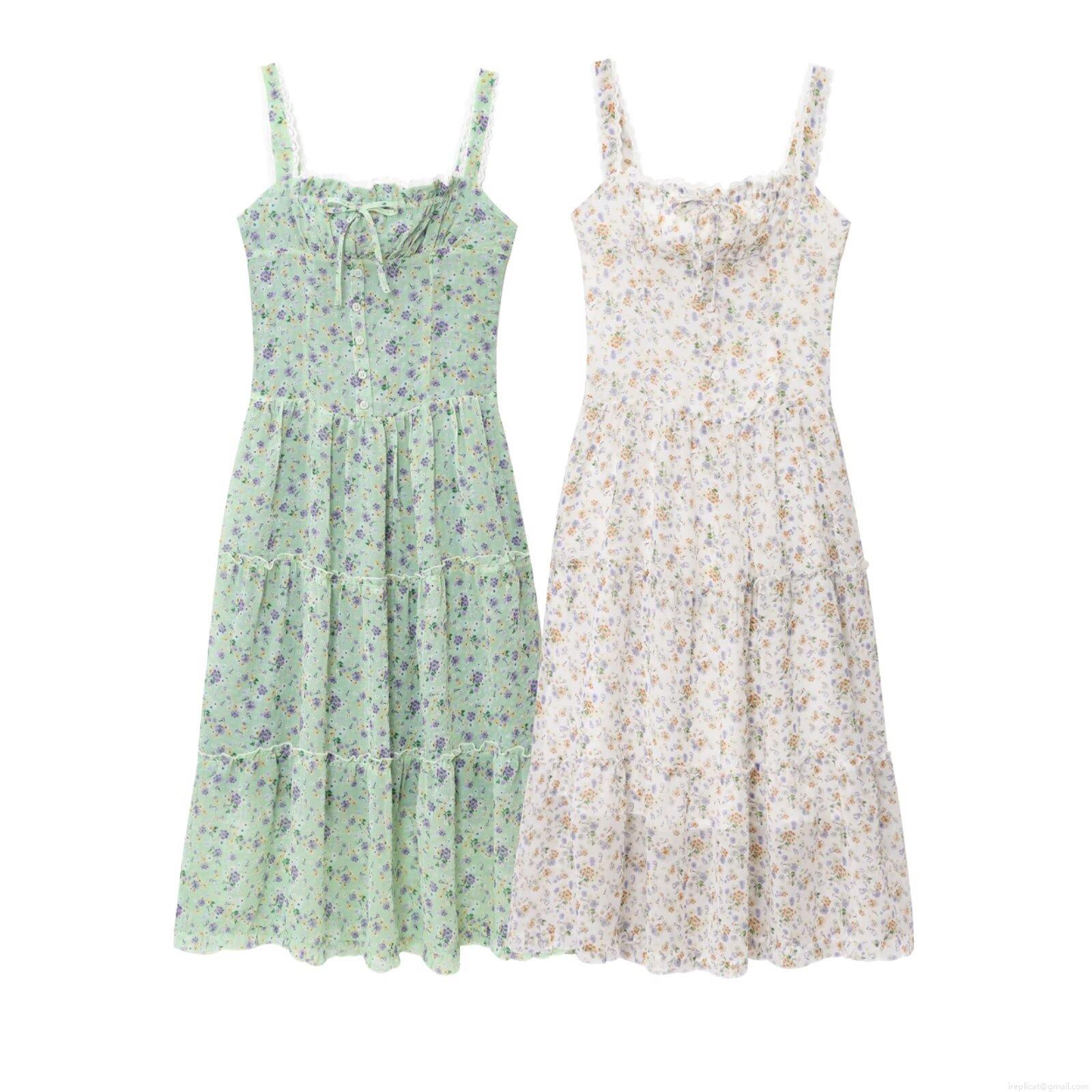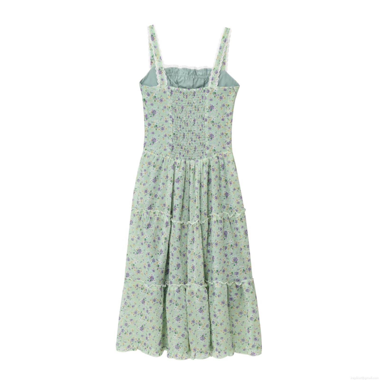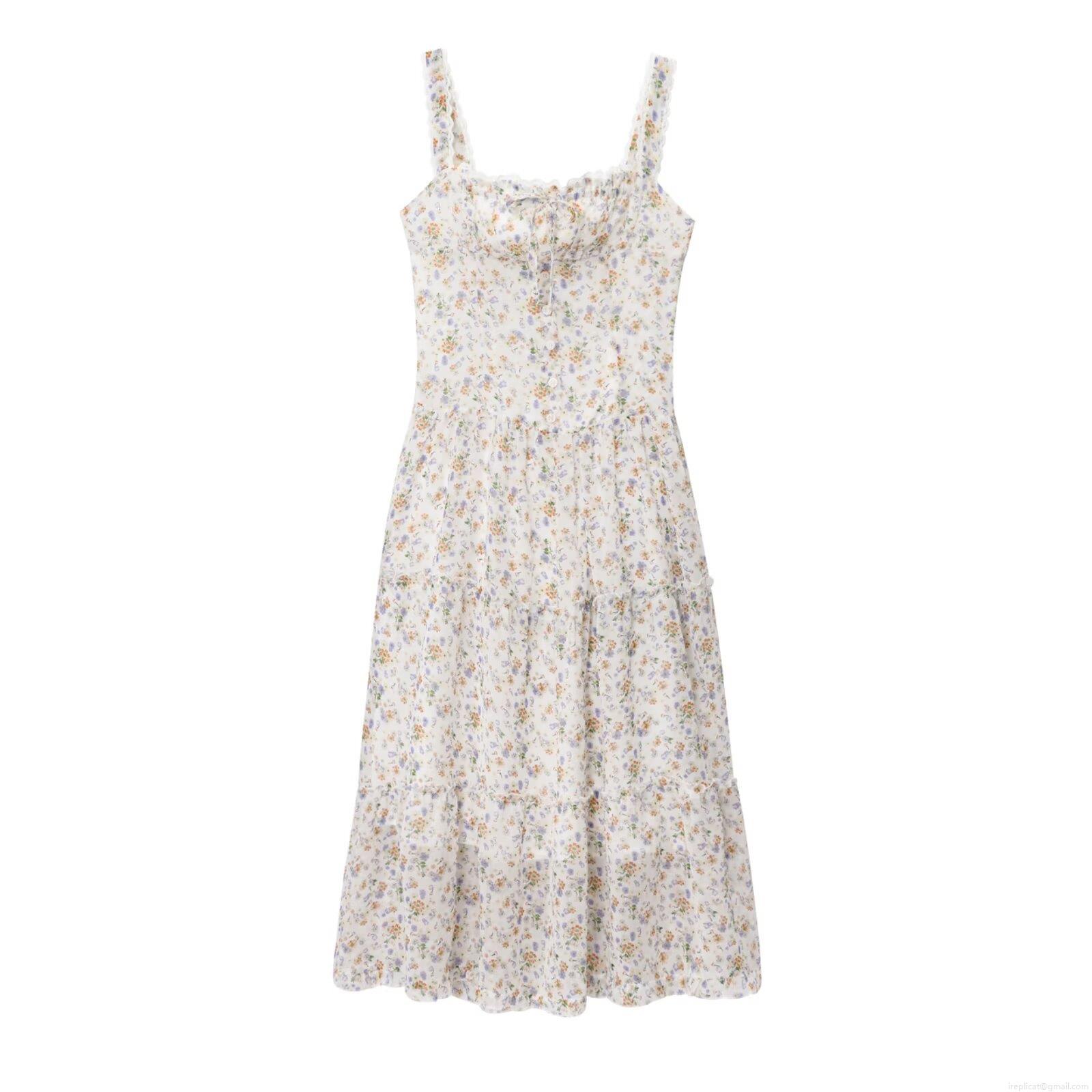 • Women's Summer Floral Suspender Maxi Dress French Pastoral Lace Trim Bow Tie Layered Cake Skirt Smocking Back A-Line Long Dress For Beach Vacation