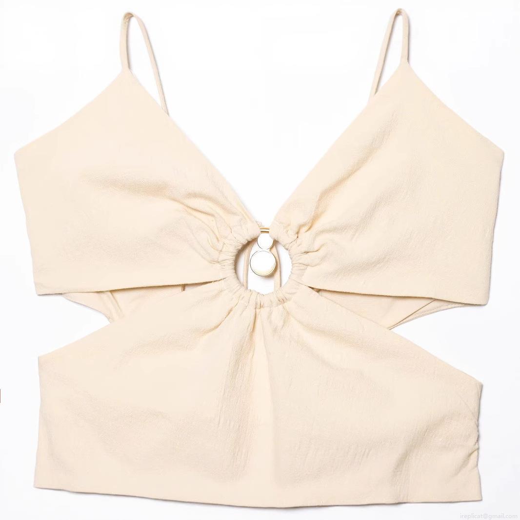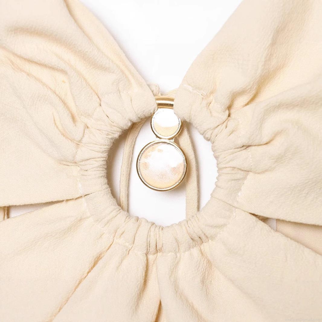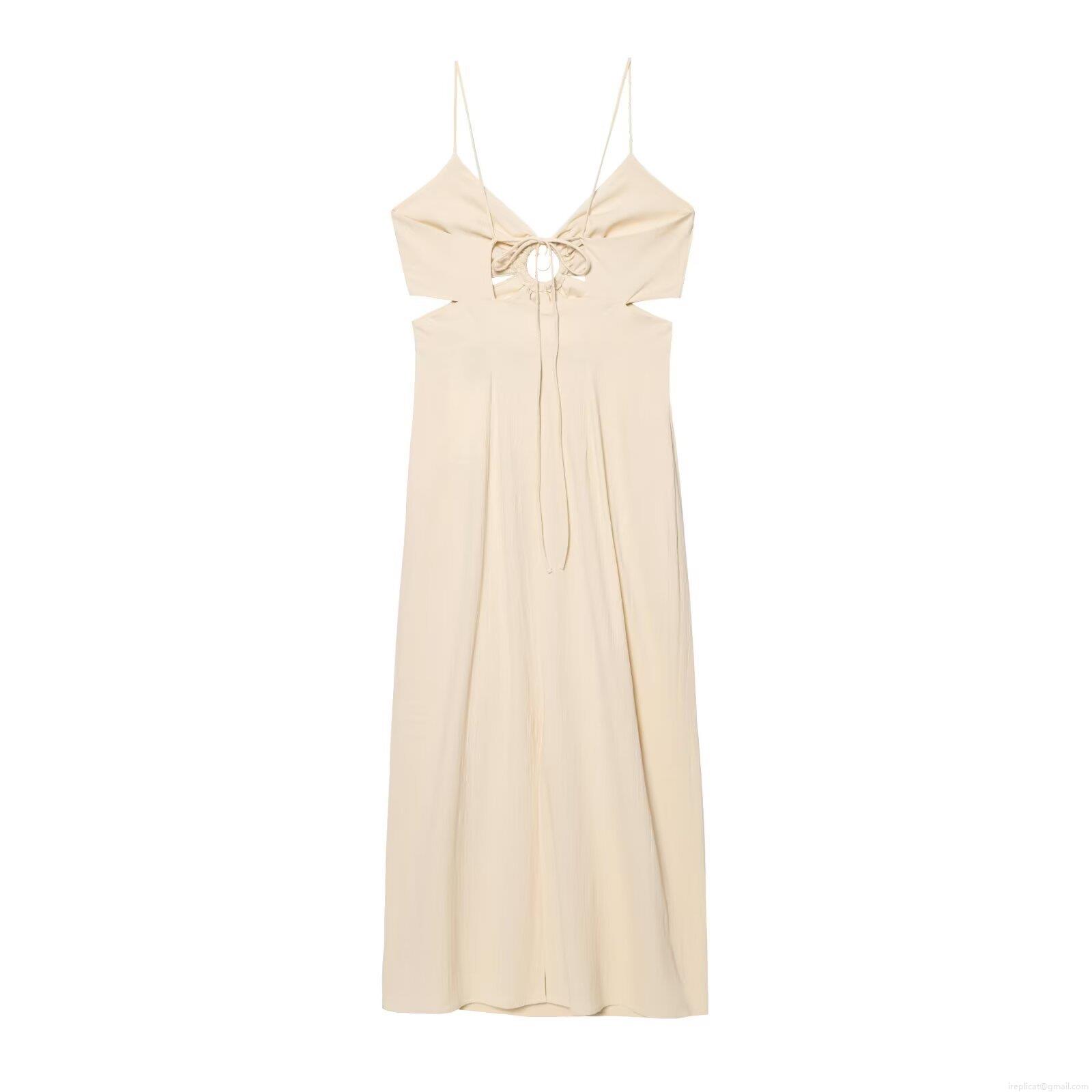 • Women's Summer Sexy Cutout Maxi Dress Sleeveless Deep V-Neck Pleated Camisole Dress With Metal Ring Waist Hollow Out Backless Beach Holiday Party Dress