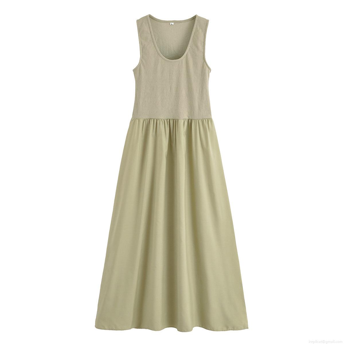 • Women's Summer Sleeveless U-Neck Patchwork Maxi Dress Ribbed Knit And Woven Polyester Pleated A-Line Long Dress Casual Streetwear Beach Vacation Clothing