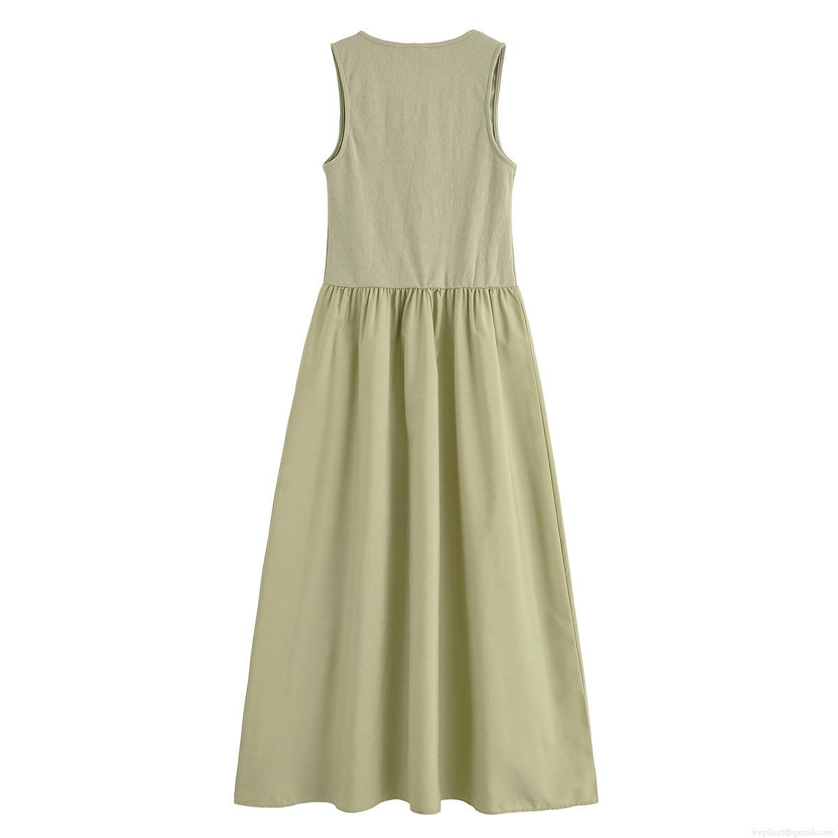 Women's Summer Sleeveless U-Neck Patchwork Maxi Dress Ribbed Knit And Woven Polyester Pleated A-Line Long Dress Casual Streetwear Beach Vacation Clothing