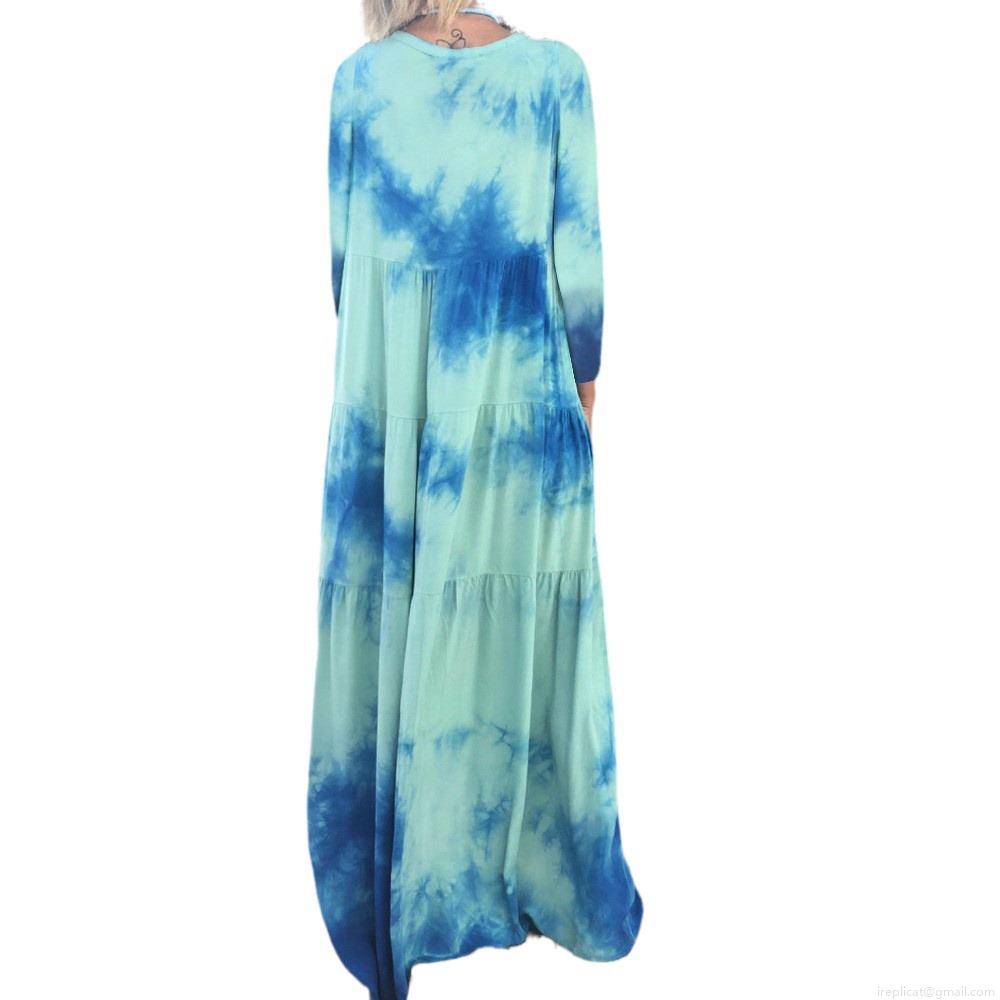 • Women's Tie Dye Gradient Maxi Dress Polyester Long Sleeve Lapel Collar Large Swing Bohemian Vacation Party Long Dress For Ladies Spring Summer