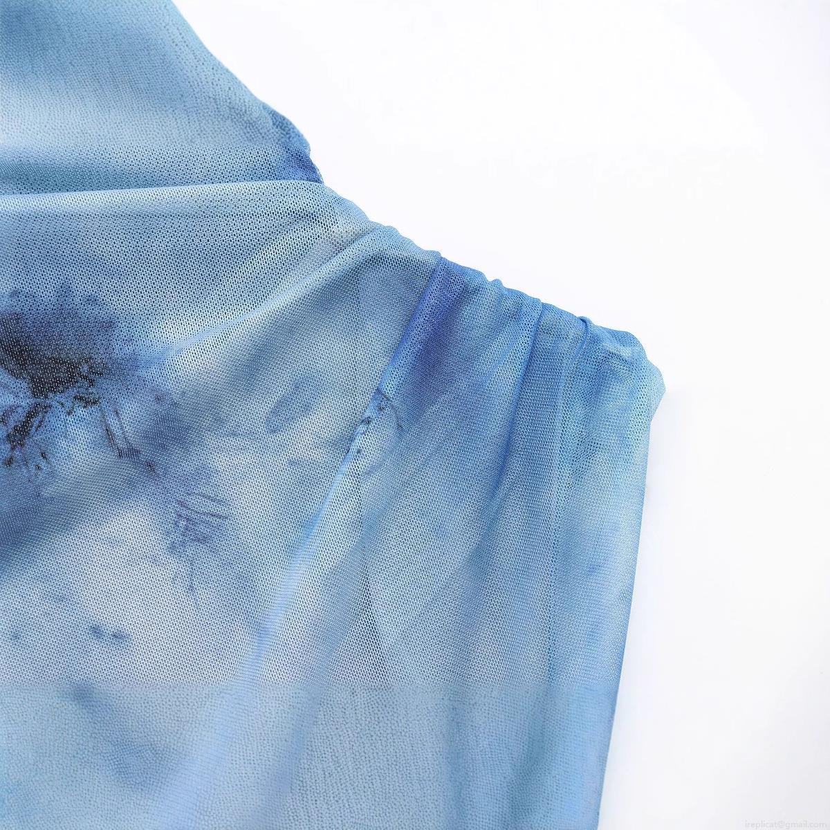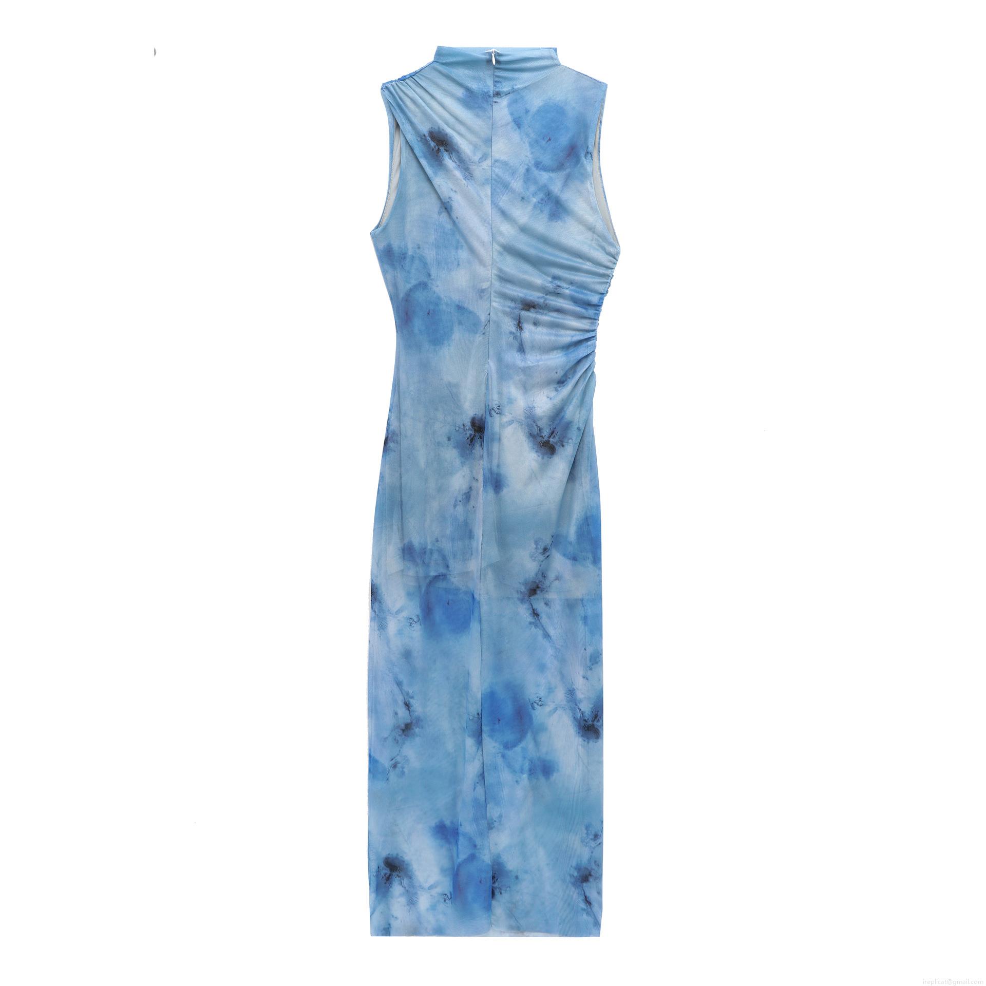 Women's Tie Dye Ruched Sleeveless Maxi Dress Elegant Mesh Bodycon Slim Fit Long Evening Dress For Party Night Club Printed Round Neck Zipper Gown