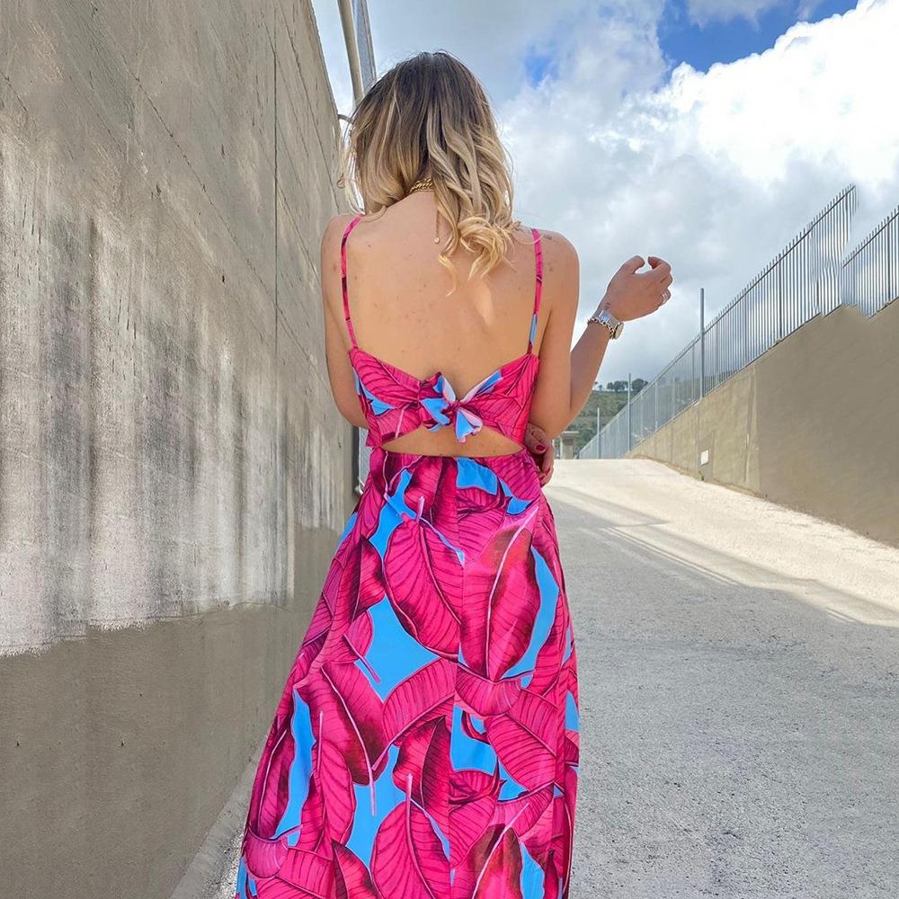 • Women's Tropical Print Maxi Dress Backless Spaghetti Strap V-Neck High Slit Bohemian Summer Beach Vacation Party Long Dress Polyester