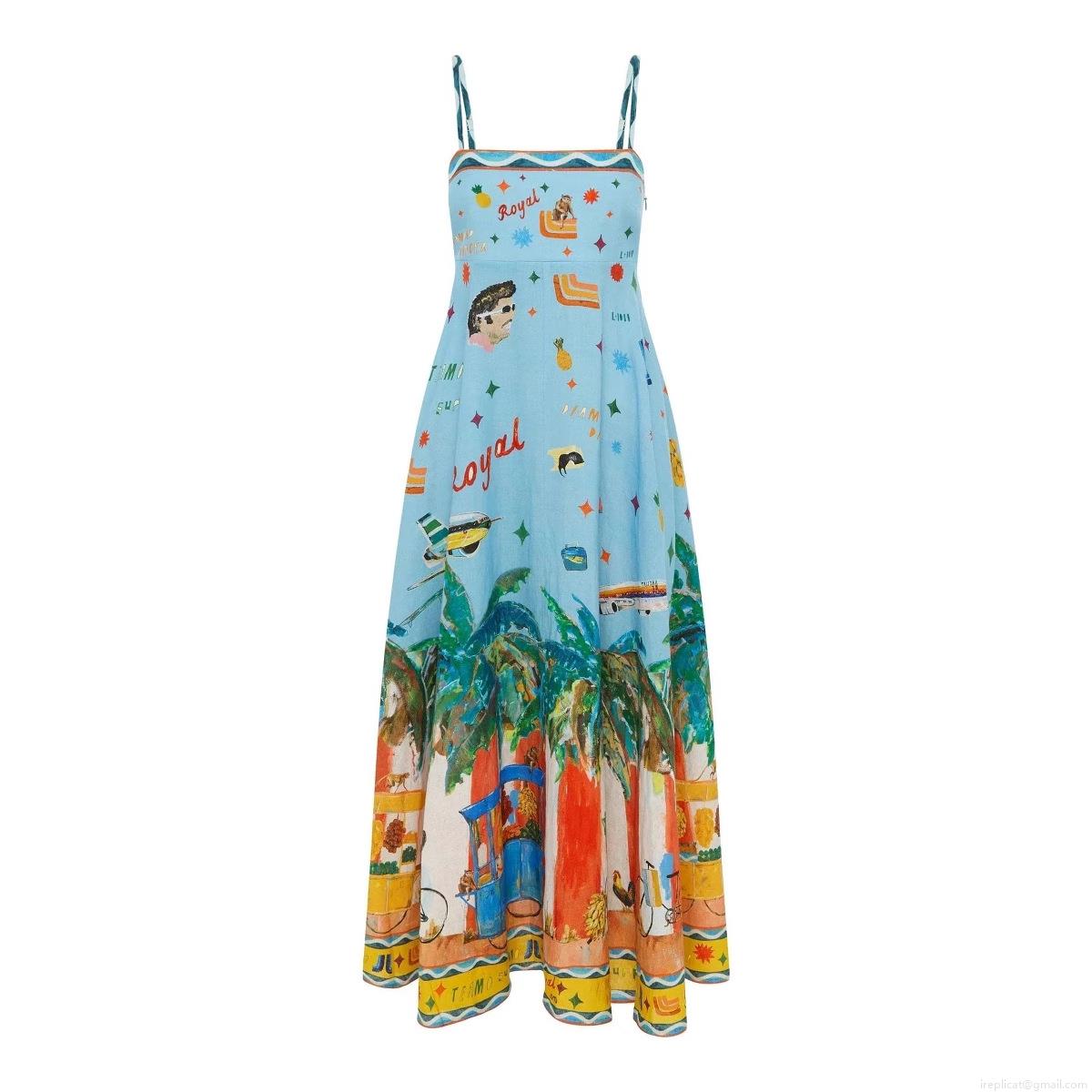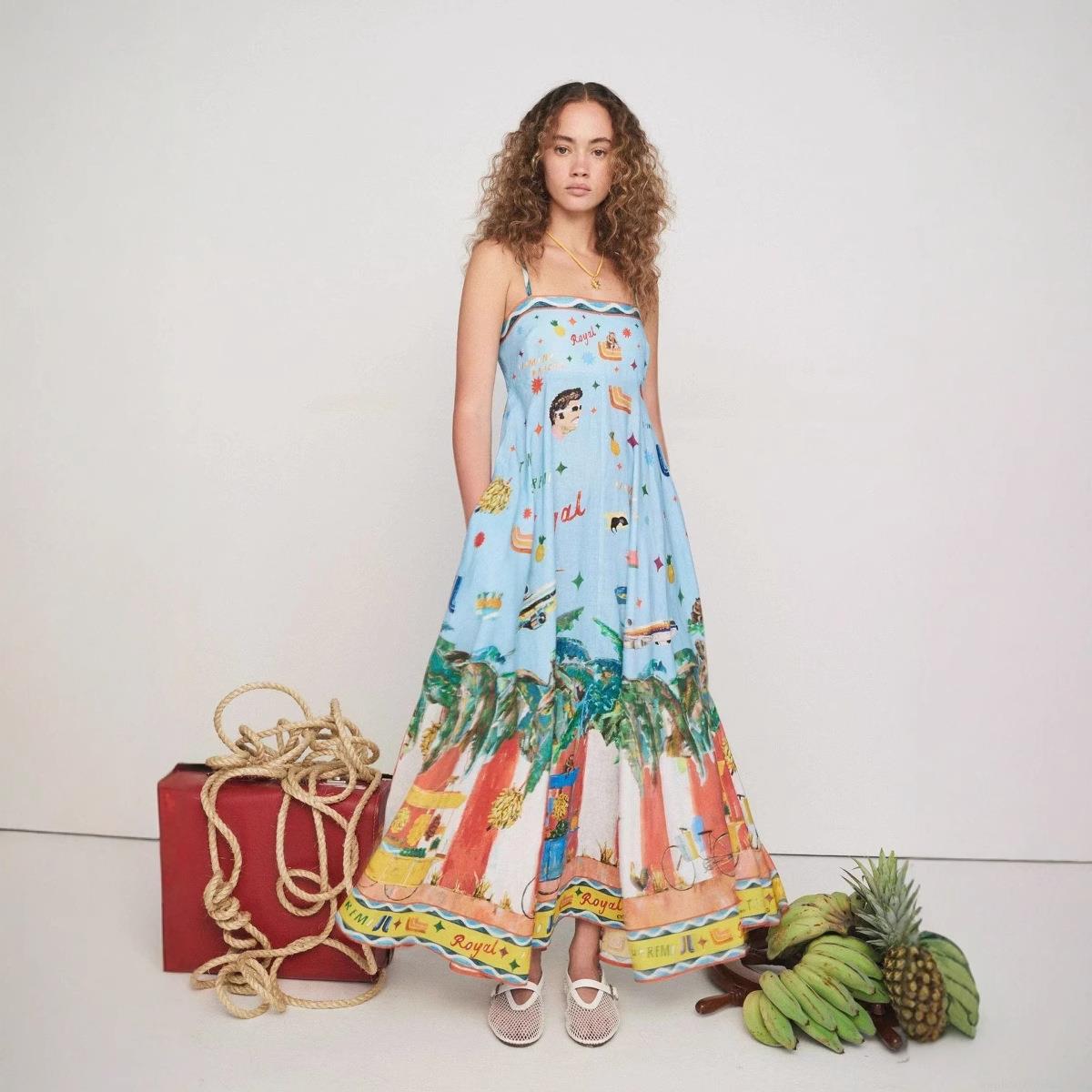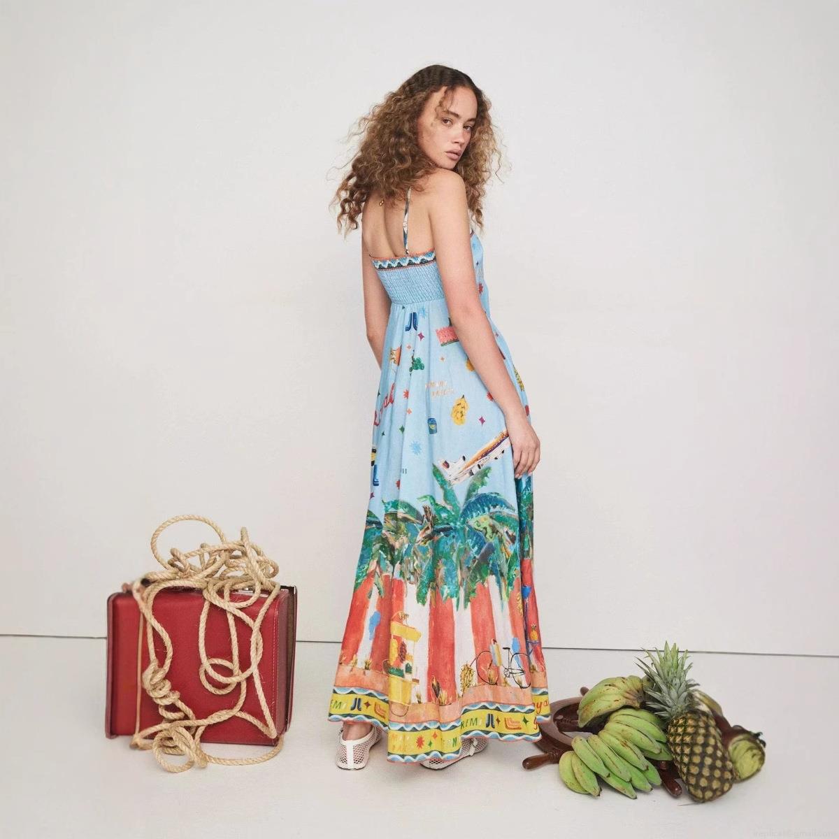 • Women's Tropical Print Spaghetti Strap Maxi Dress Bohemian Large Swing Vacation Long Sundress 95% Polyester A-Line Floral Print Dress For Summer Resort Wear