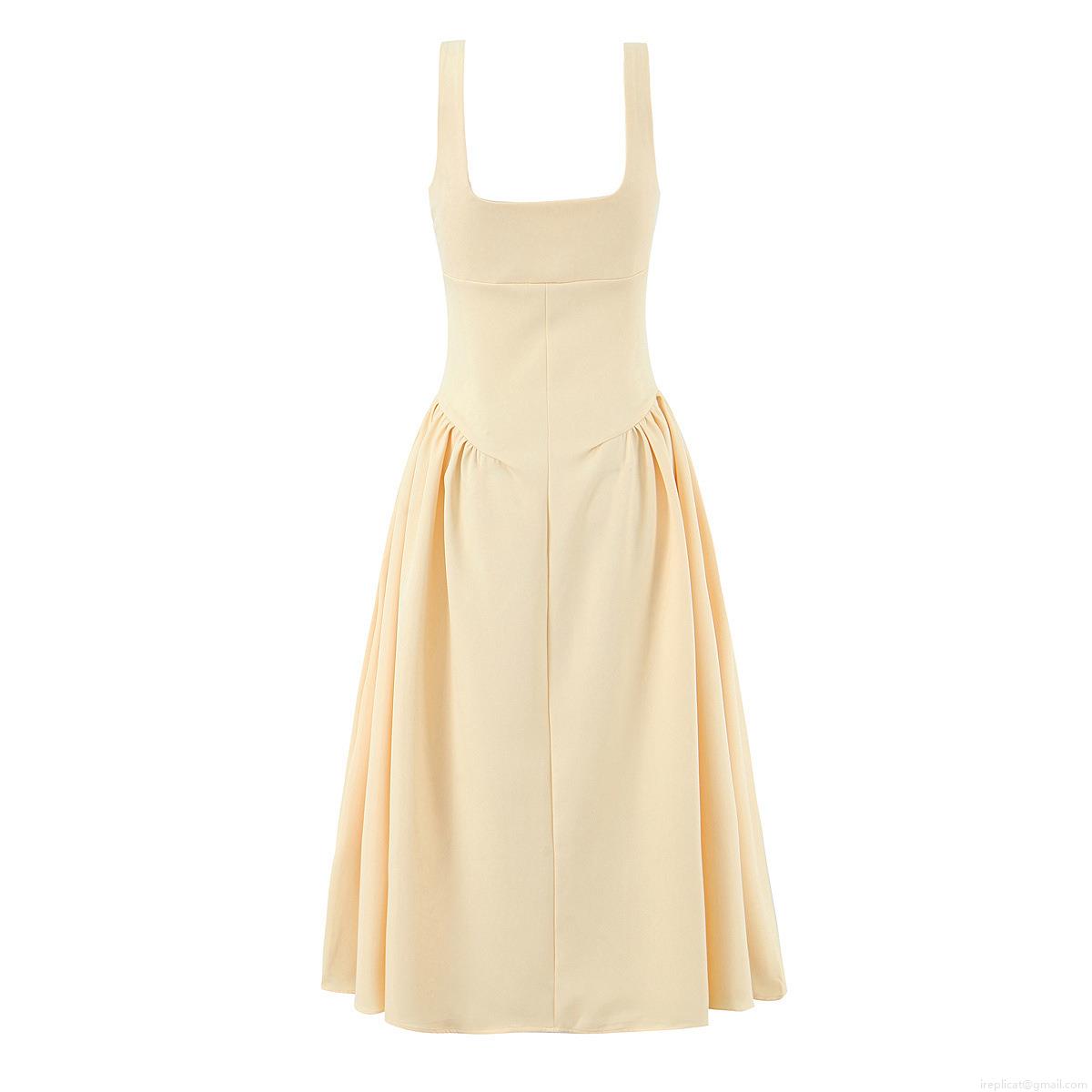 • Women's Vintage Elegant Sleeveless Maxi Dress Square Neck Waist Cinching Pleated Hem Long Dress For Vacation Party Casual Chic