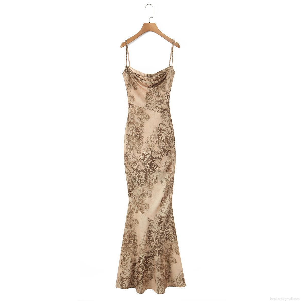 • Women's Vintage Floral Maxi Slip Dress Cowl Neck Satin Polyester Fishtail Long Evening Party Wedding Dress Slim Fit Backless