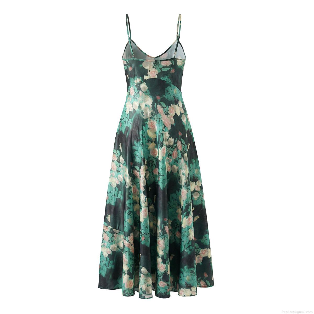 • Women's Vintage Rose Floral Print Polyester Satin Cami Maxi Dress V-Neck Backless Slim Fit A-Line Long Dress For Summer Vacation Party