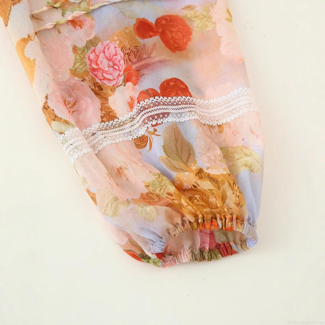 Women's V-Neck Long Sleeve Floral Print Maxi Dress With Lace Patchwork Retro Boho Chiffon Style Autumn Beach Party Long Dress