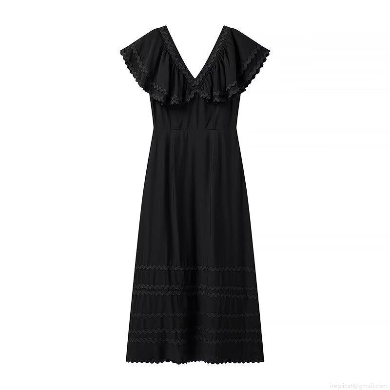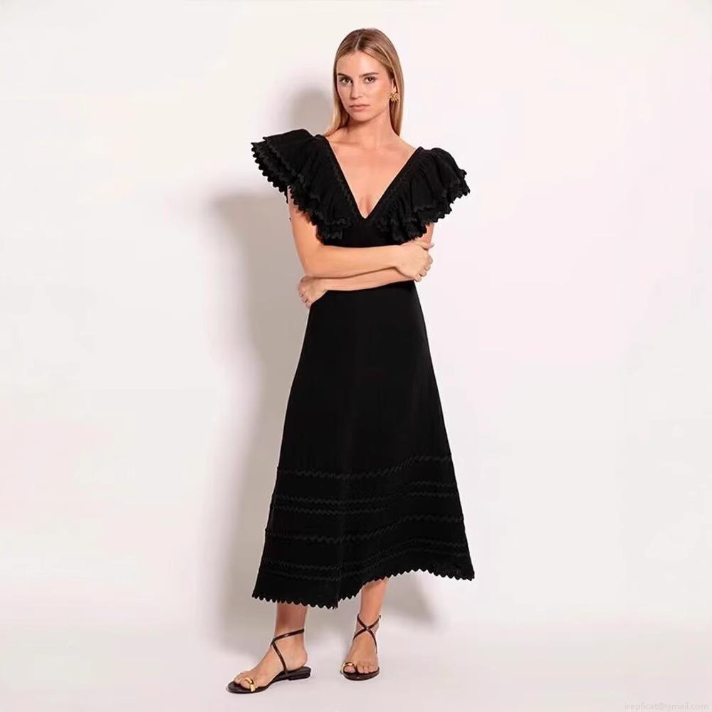 • Women's V-Neck Maxi Dress With Flutter Sleeve Rickrack Trim Elegant Vacation Solid Color High Waist Tiered Long Dress For Ladies Summer Beach Party