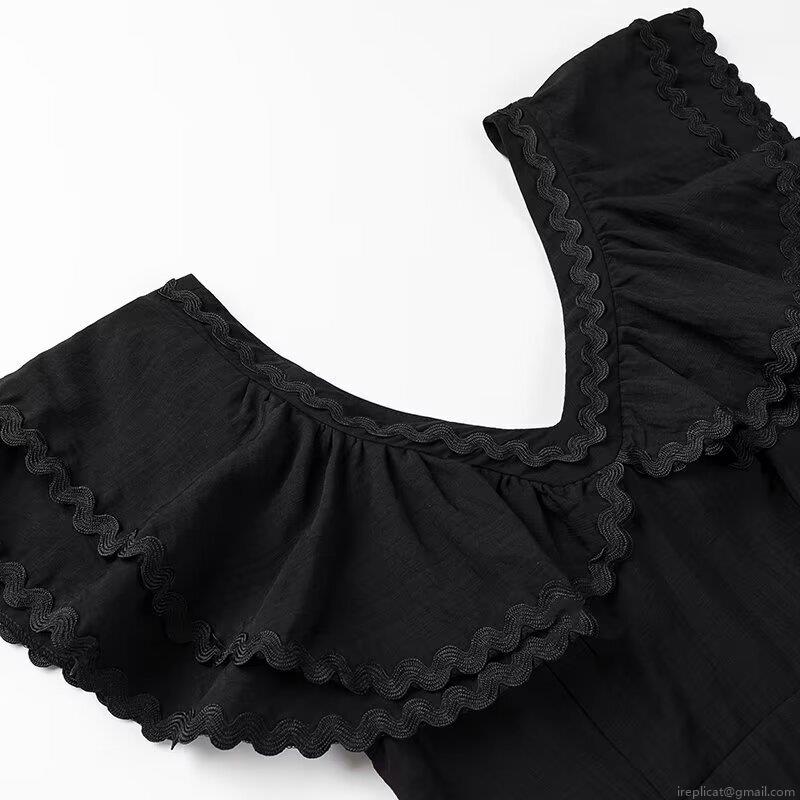 Solid Color, Webbing, Ruffles, High-waisted, Flying Sleeves, Wavy Trim