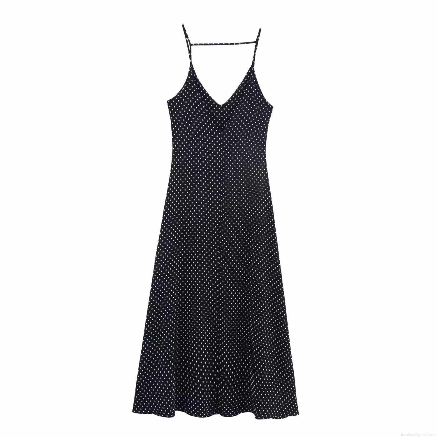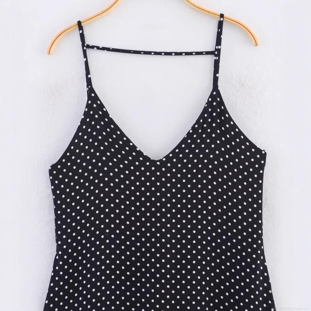 Polka Dots, Printing, V-neck, Suspenders, Big Swing
