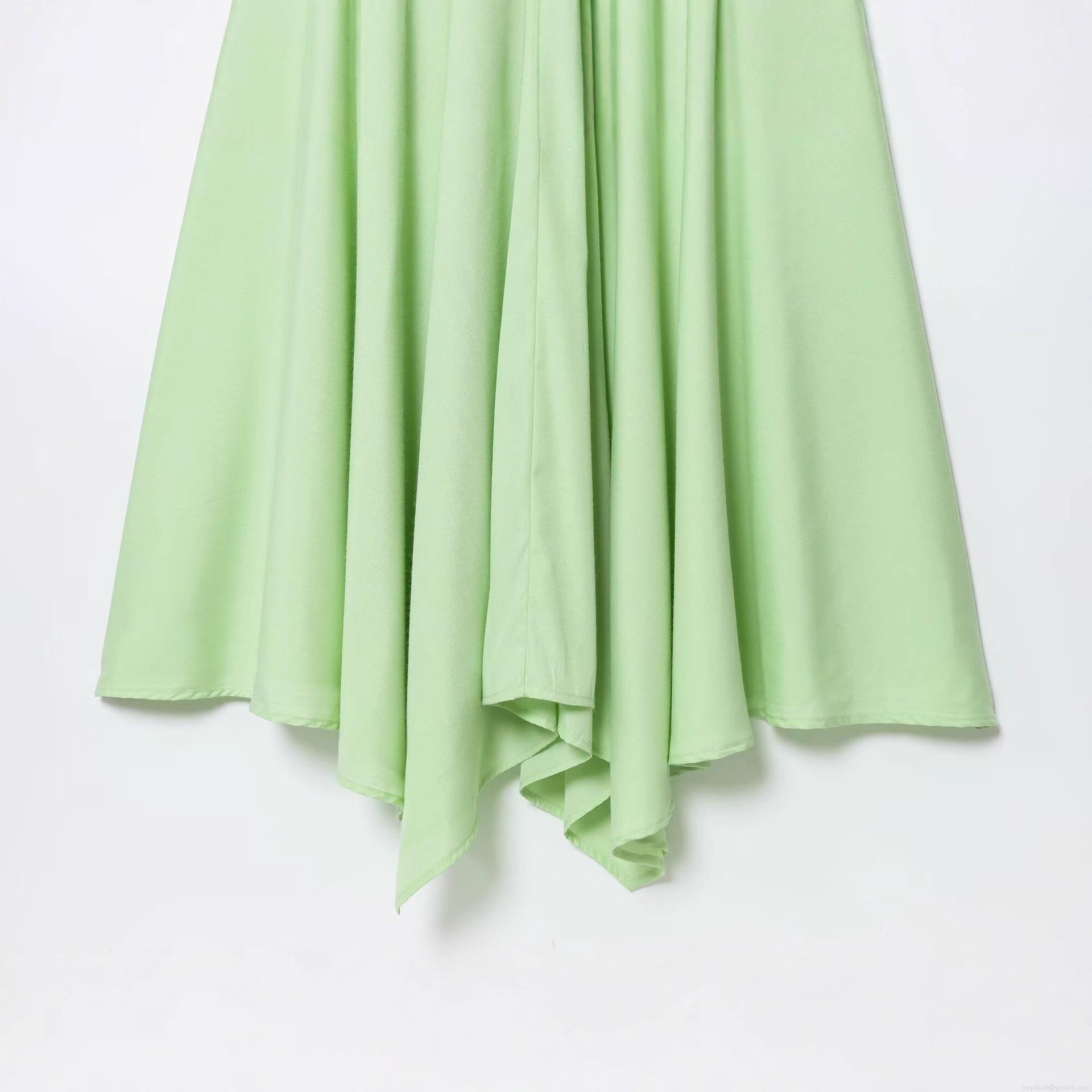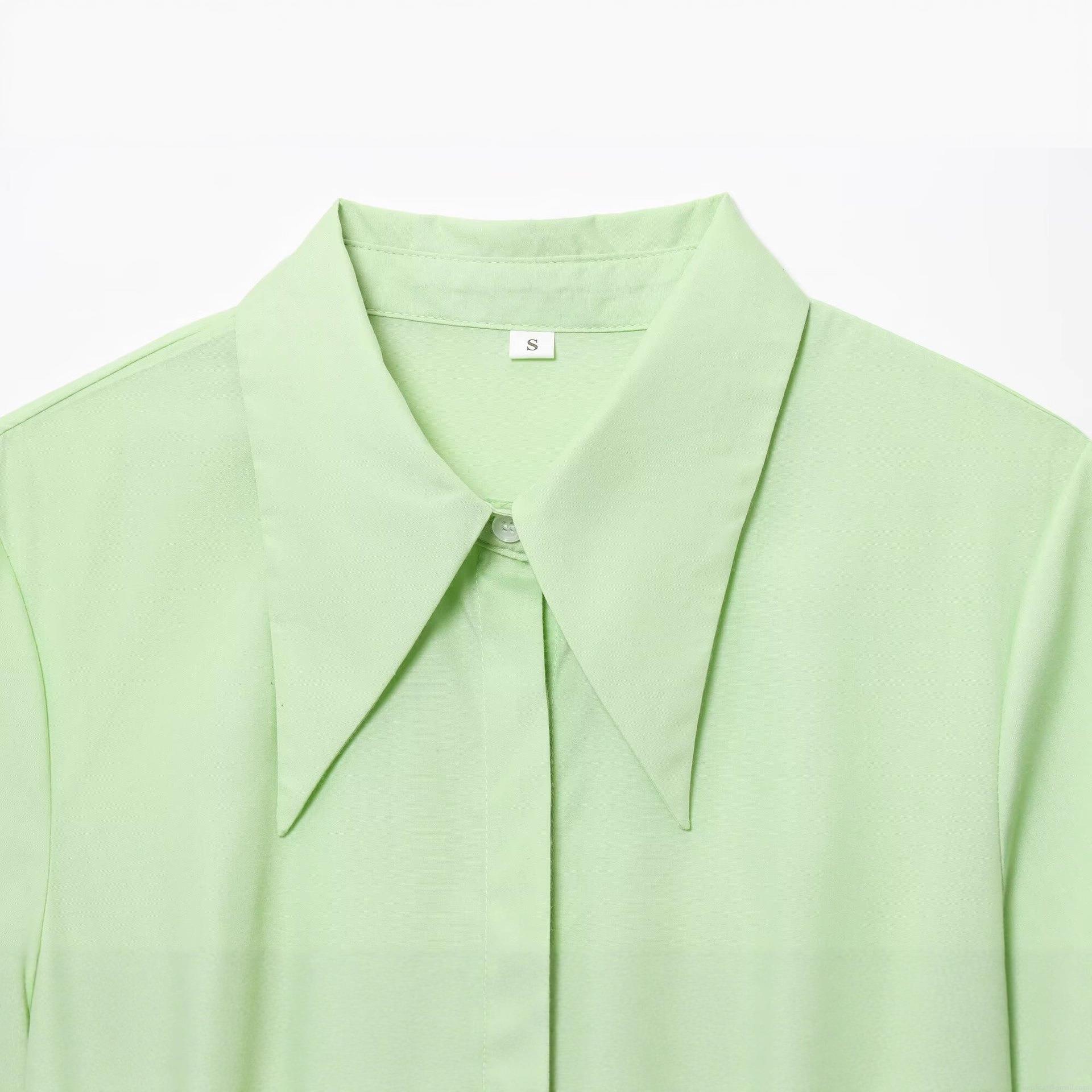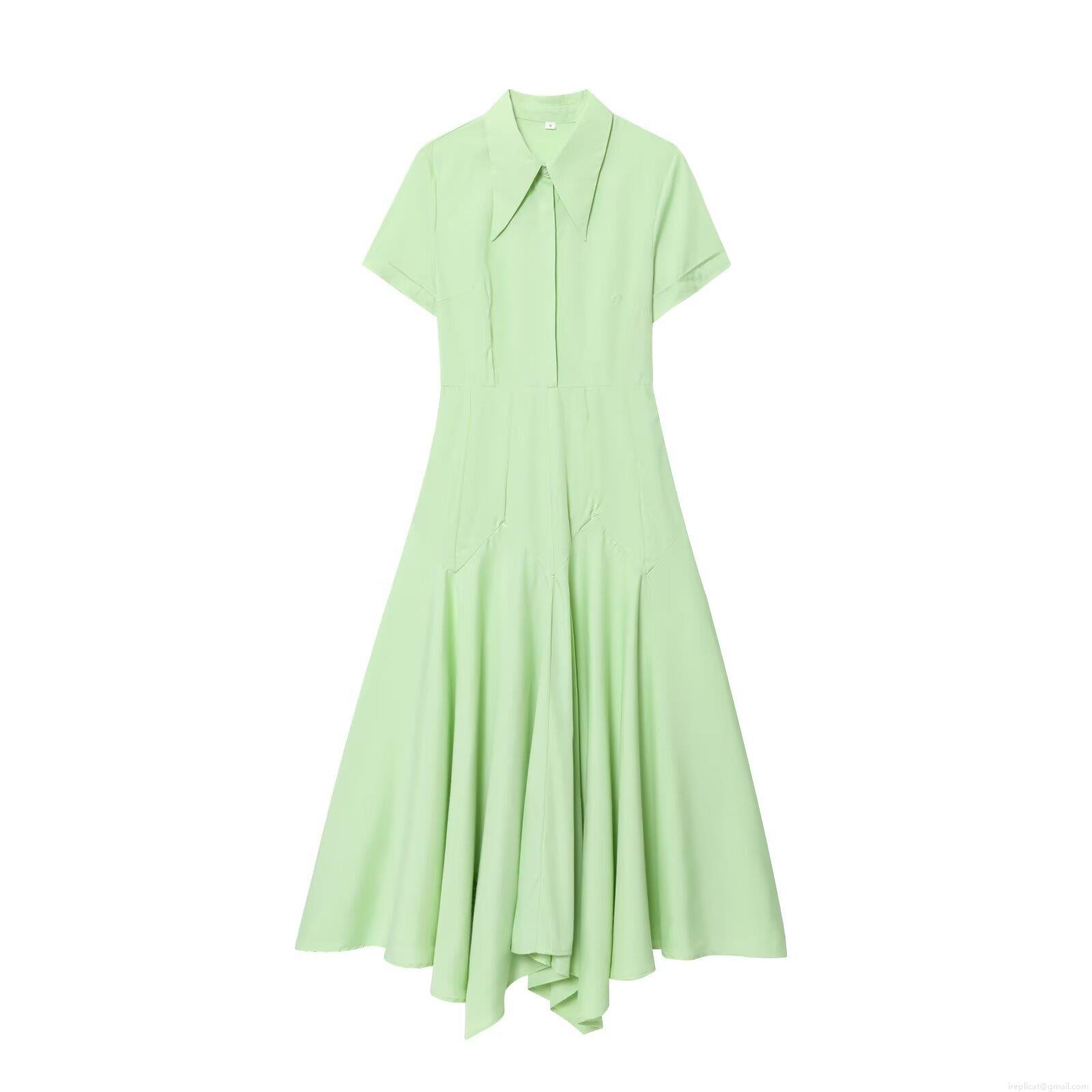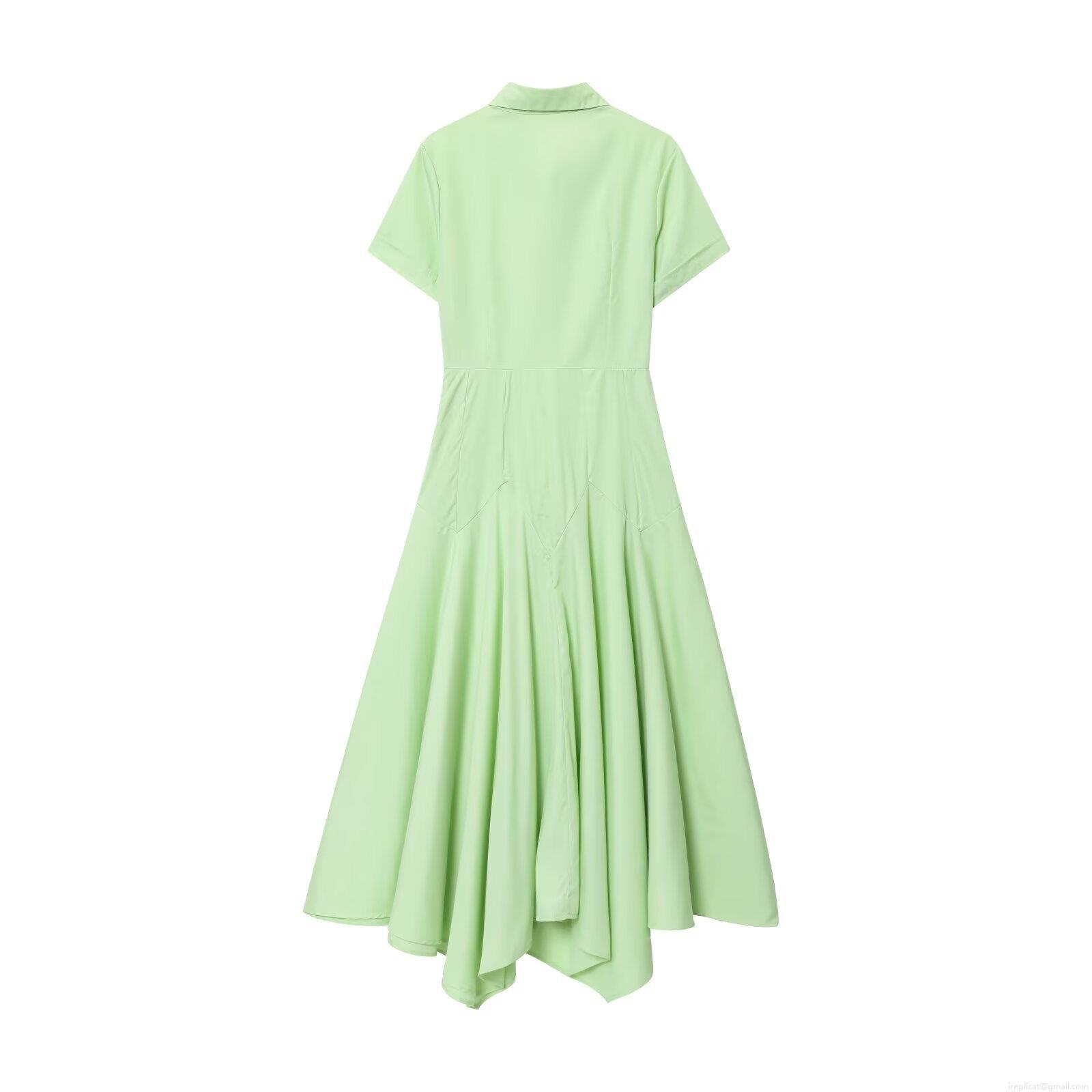 • Women's Western Style Solid Light Green Maxi Dress With Asymmetric Hem Single Breasted Turn-down Collar Short Sleeve Casual Streetwear Dress