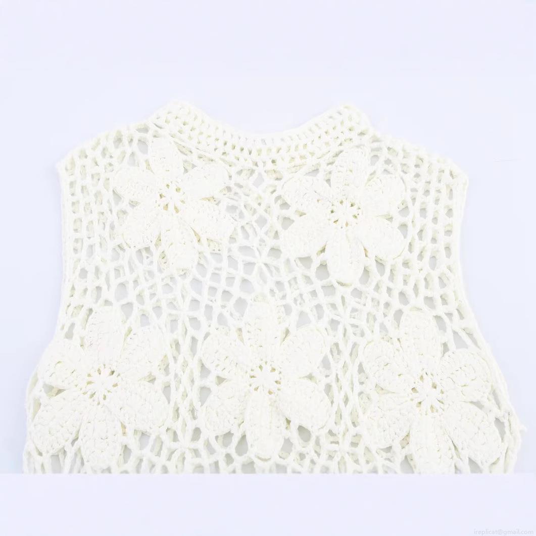 Crocheted Openwork Top, Fine Pleated Hem Splicing