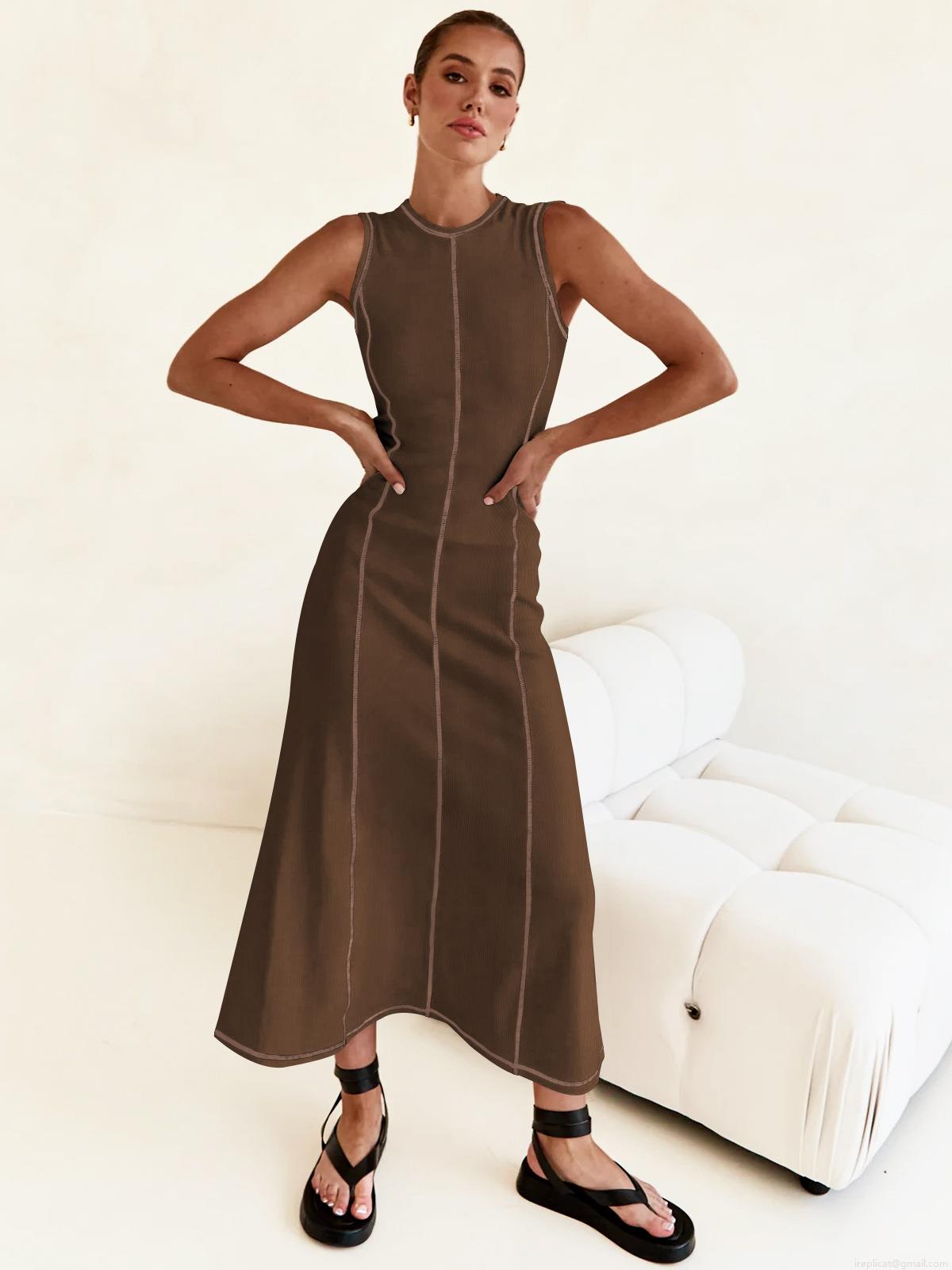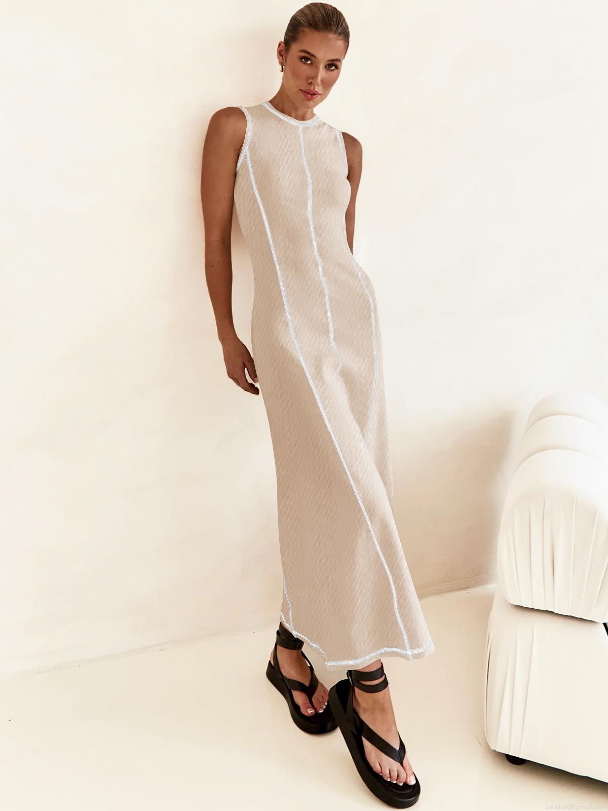 • Women's Y2K Contrast Stitching Knit Tank Dress Sleeveless Ribbed Slim Fit Maxi Long Dress For Summer Streetwear Party Casual Fashion Vestidos