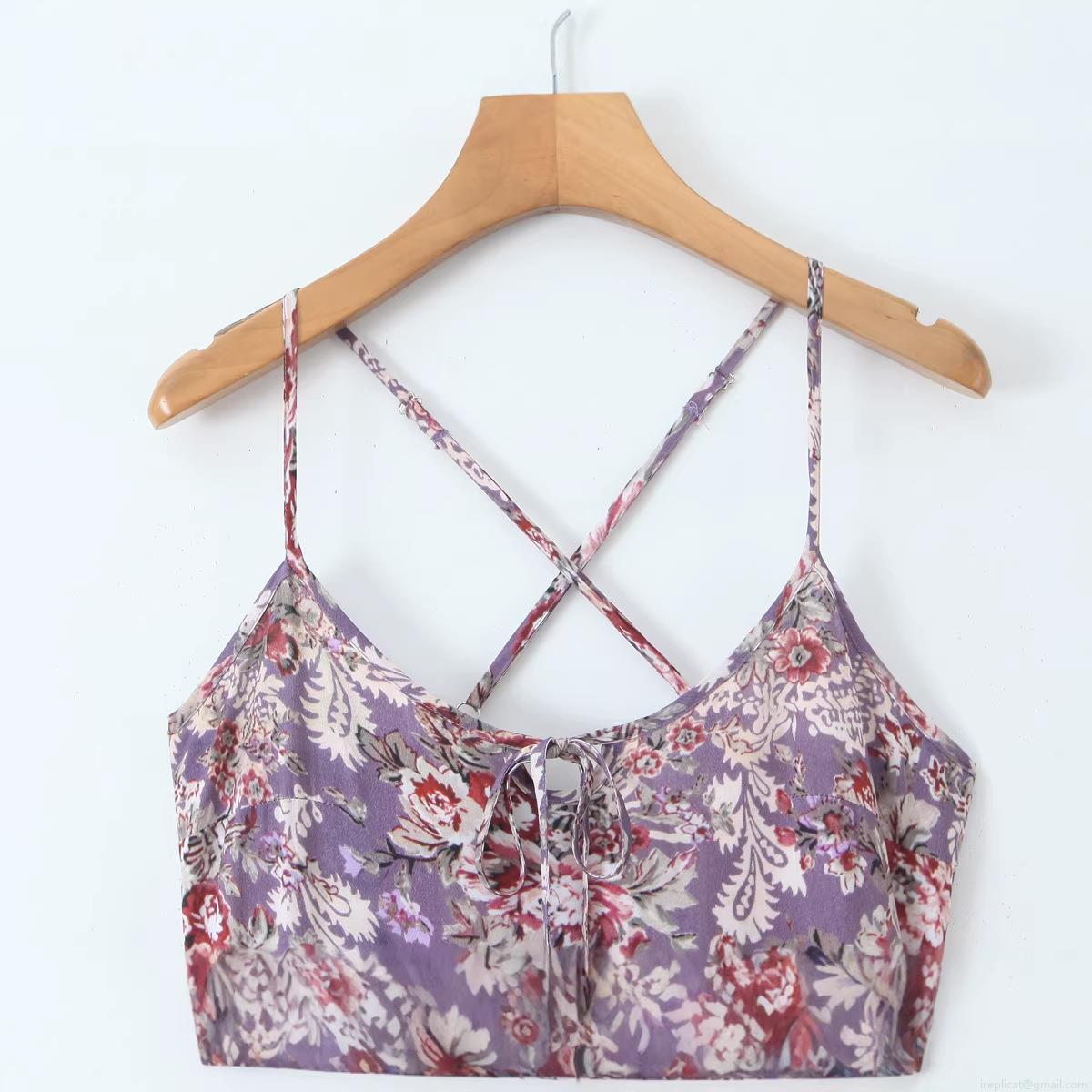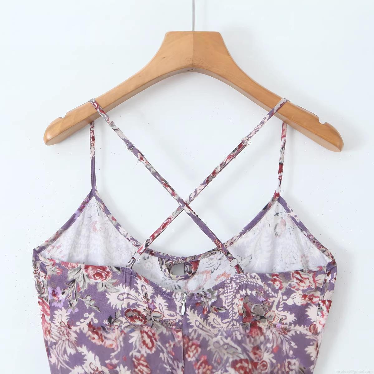 Floral Pattern, Printing, Paisley, Lace, Backless, Cross Straps