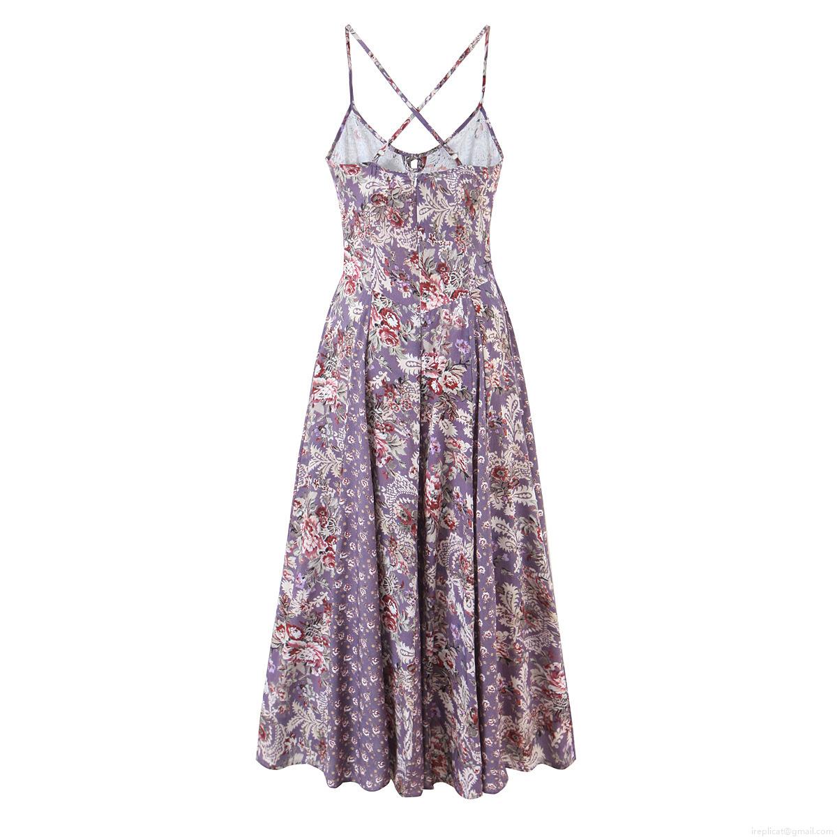 • Bohemian Purple Paisley Floral Printed Cotton Blend Slip Dress Women Sexy Backless Cross Straps Midi Sundress For Summer Vacation Streetwear