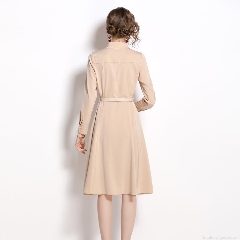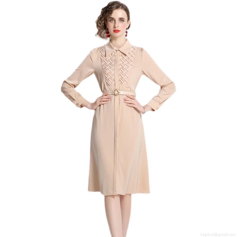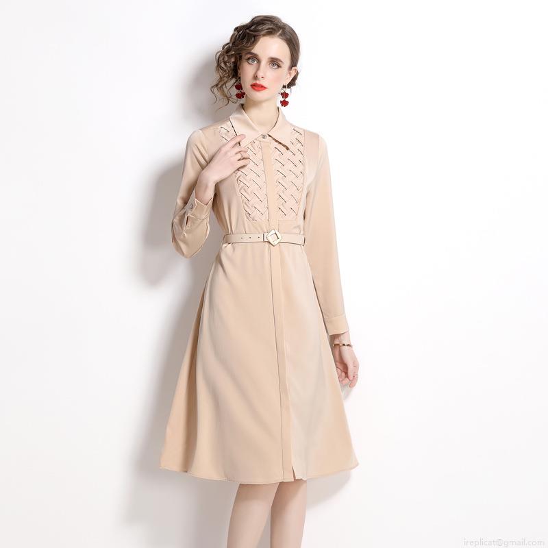 Solid Color, Single-breasted, Woven Decoration, Shirt Collar, Waist Belt, Fine Texture