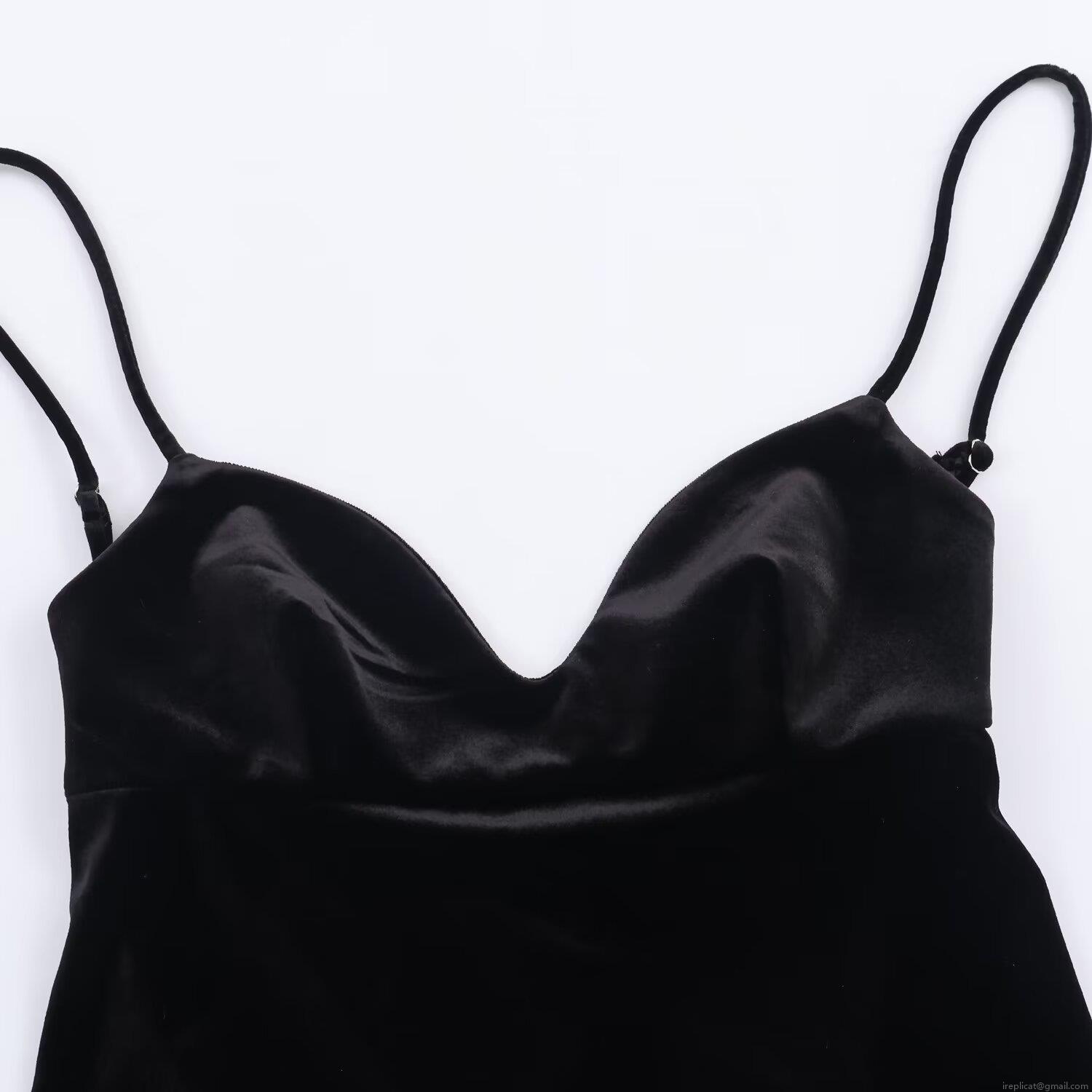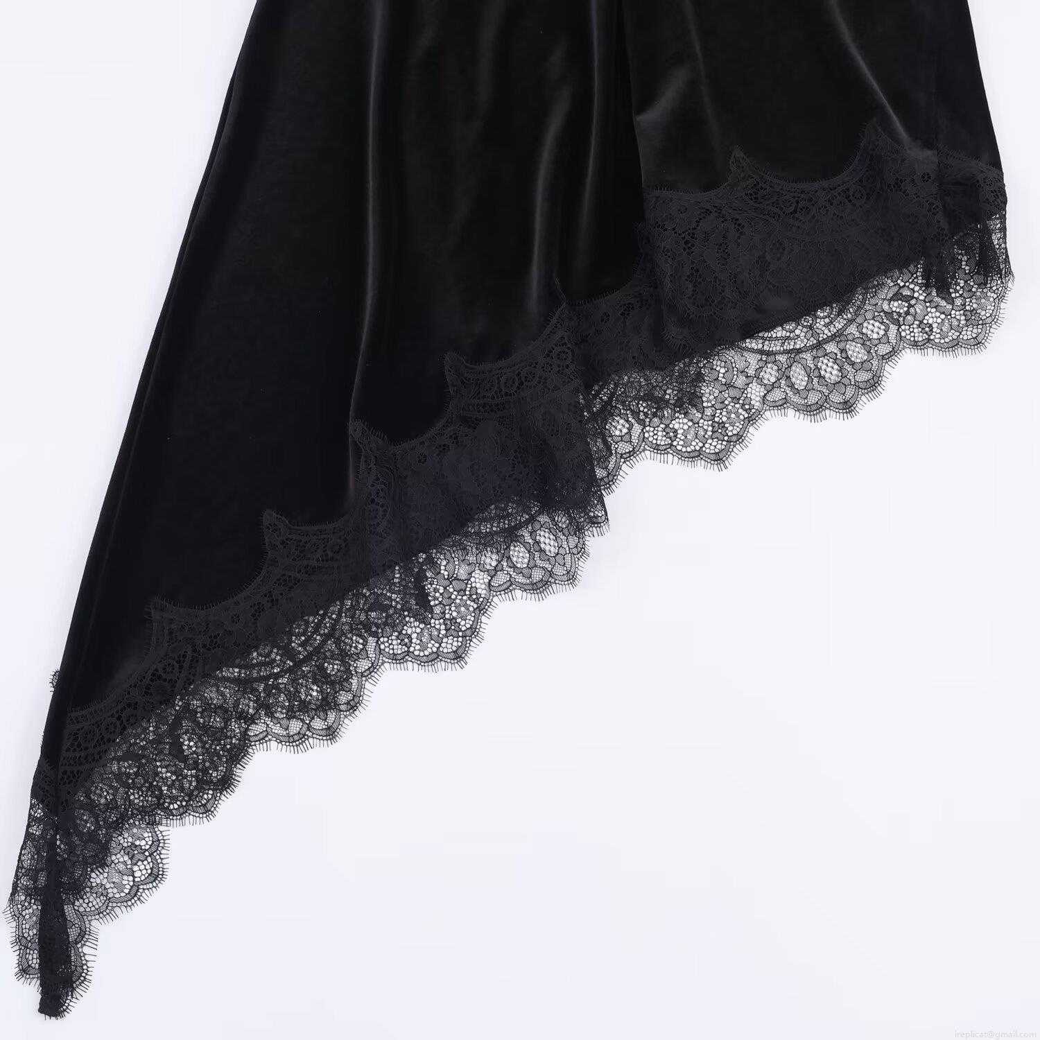 • Elegant Black Velvet Lace Midi Dress Backless Asymmetric Hem Sexy Cami Slip Dress With Adjustable Straps For Party Club Evening Women Luxury