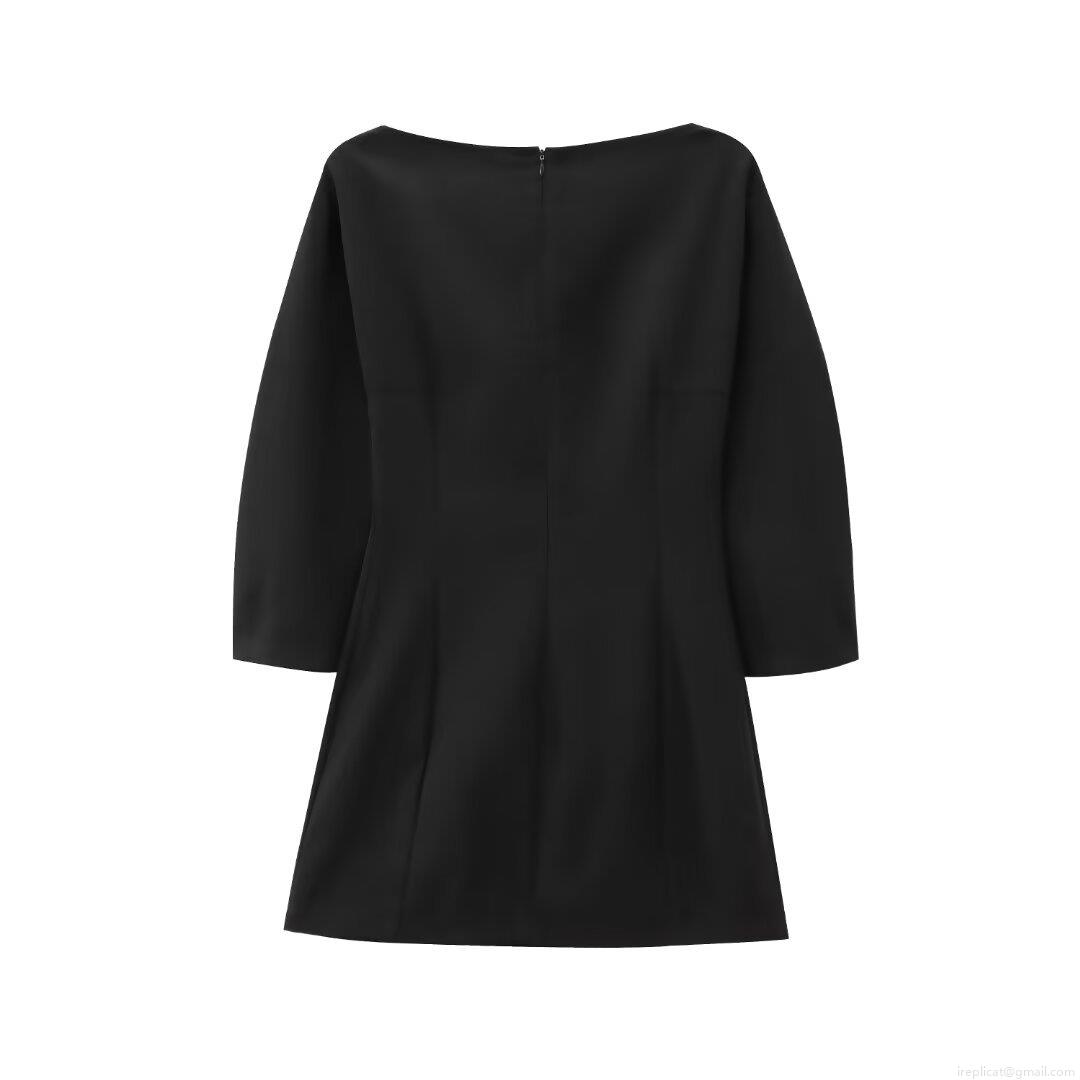 • Elegant Boat Neck Midi Dress For Women Waist Thinning Slim Fit A-Line Evening Dress Polyester Solid Color Nine-Quarter Sleeve Sexy Party Cocktail Wear