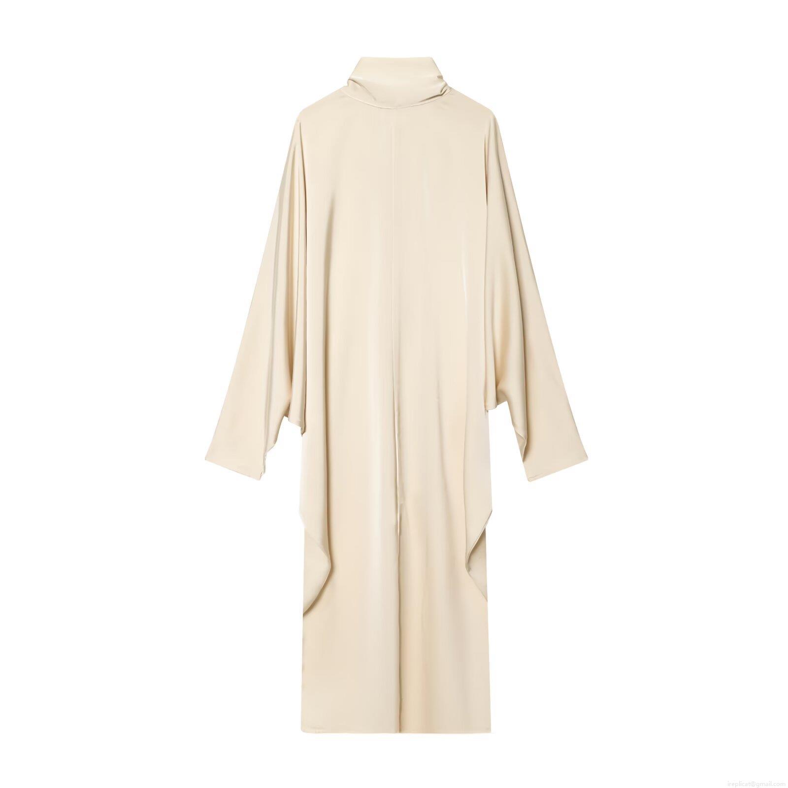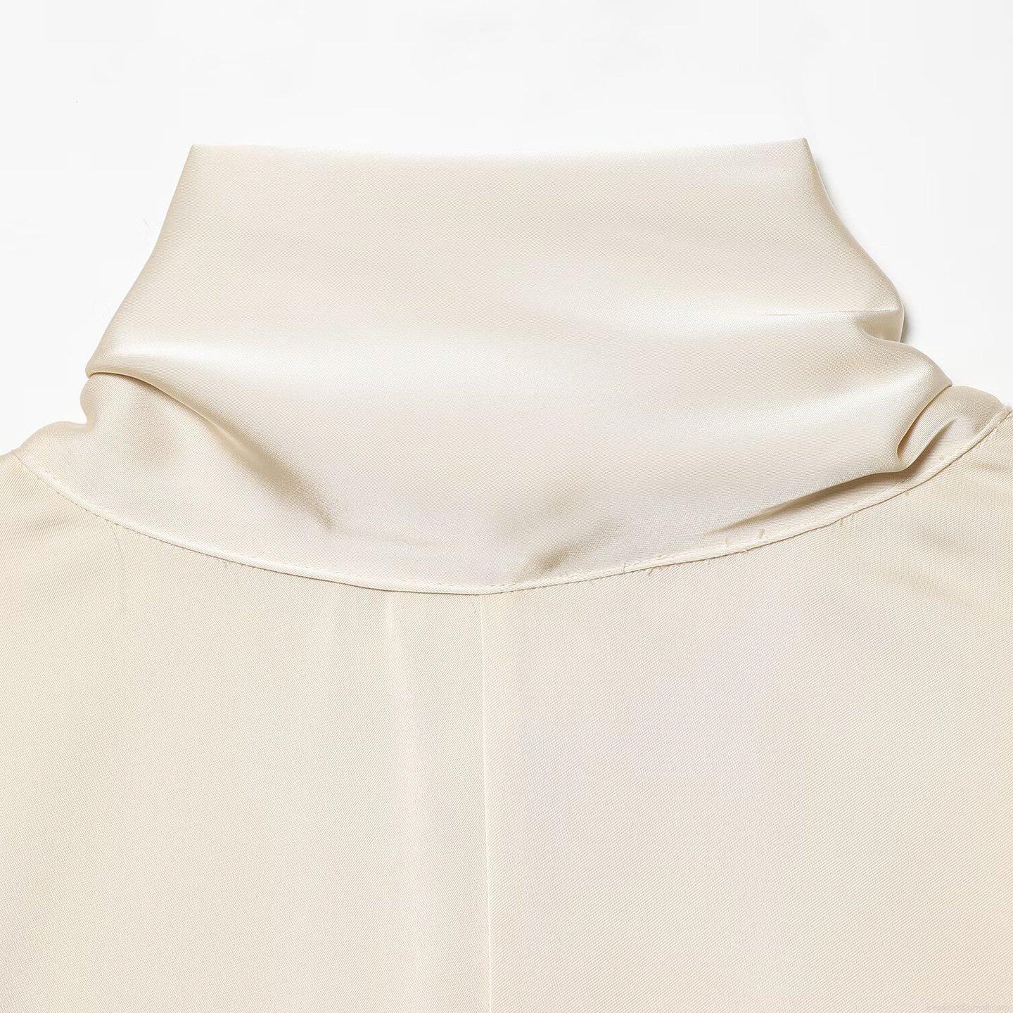 • Elegant Champagne Satin Midi Dress High Neck Tie Back Long Sleeve Batwing Sleeve Loose A-Line Dress For Women Party Casual Evening Formal Wear