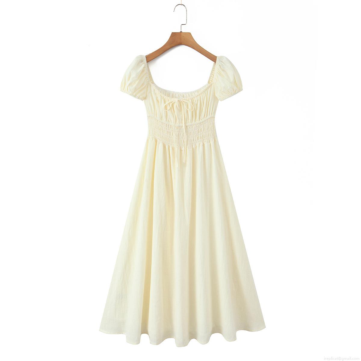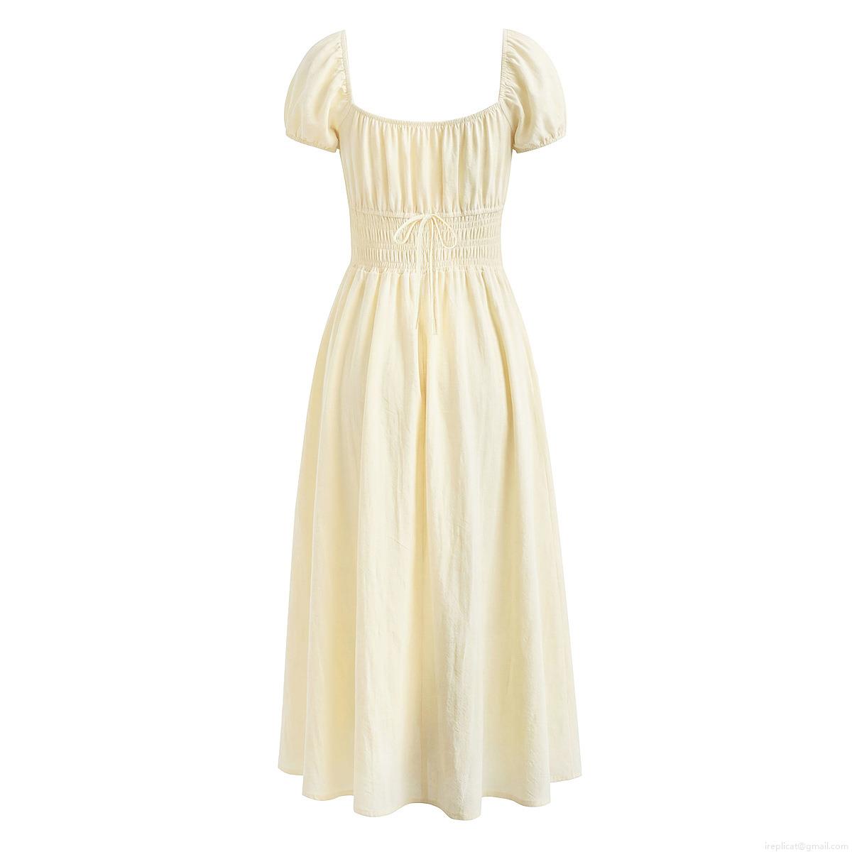 • Elegant Cotton Cottagecore Dress Women Square Neck Puff Sleeve A-Line Midi Dress Summer French Retro Style Party Clothing