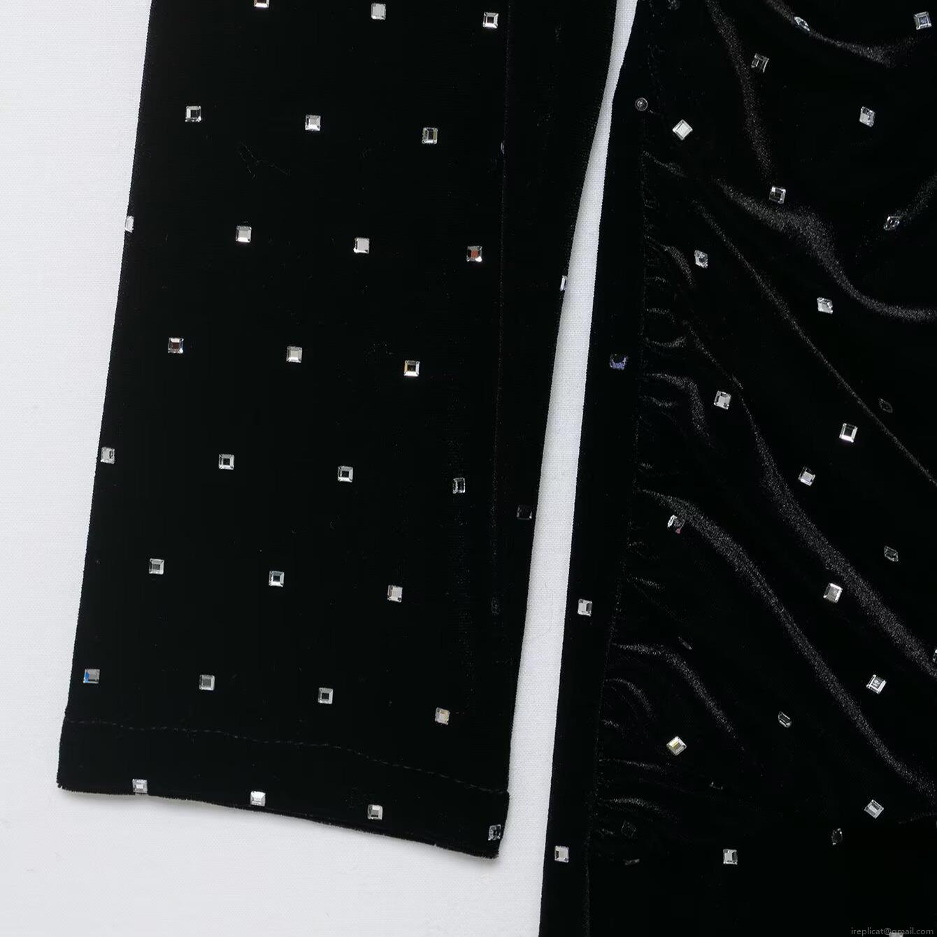 Elegant Deep V-Neck Velvet Midi Dress For Women Sexy Long Sleeve Rhinestone Studded Slim Fit Party Gown Autumn Winter Evening Clubwear Dress