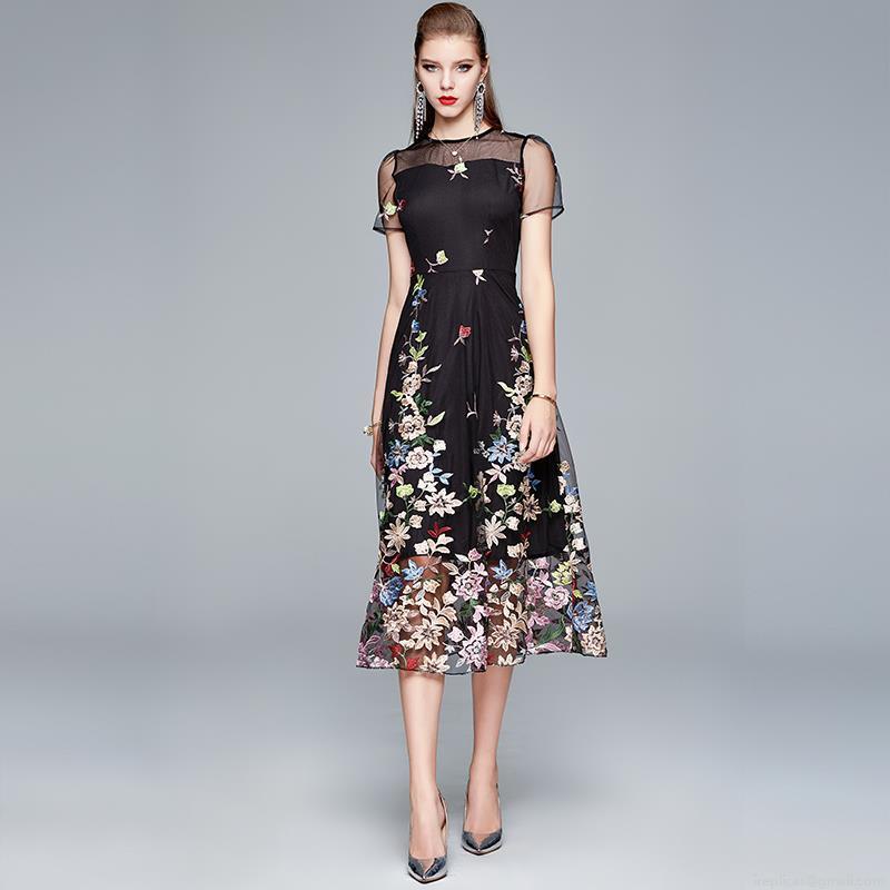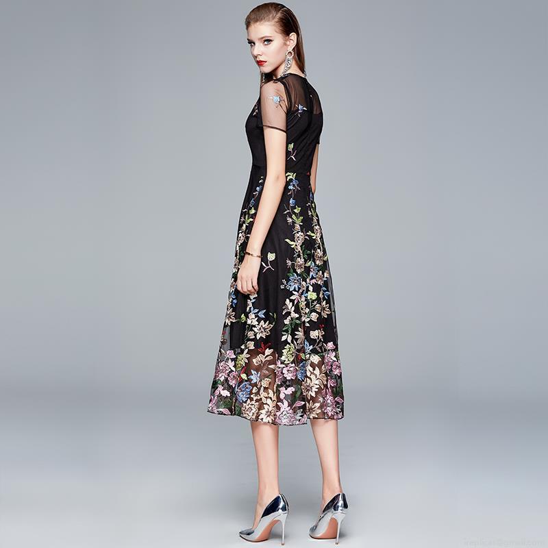 Mesh Splicing, High-waisted And Slimming, 3d Embroidery, Heavy Embroidery, Multicolor Floral, Sheer Neckline