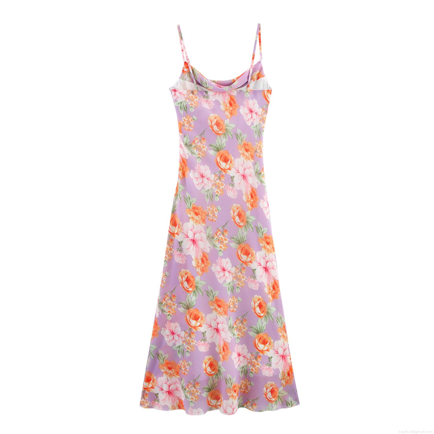 • Elegant Floral Print Cowl Neck Cami Dress Women Sexy Backless Slim Fit Satin Sleeveless Long Dress For Summer Party Vacation Spring