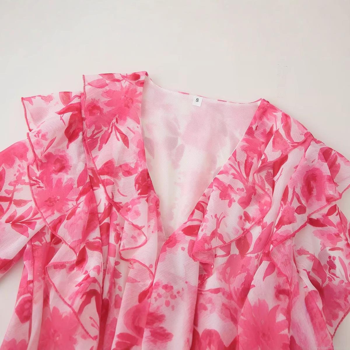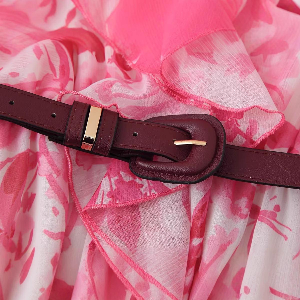 Floral Pattern, Ruffles, Printing, Belt