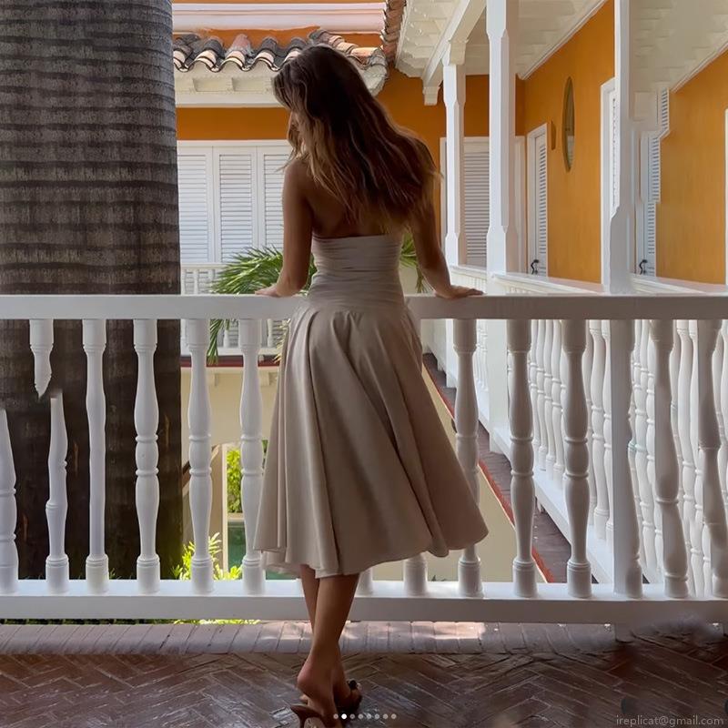 • Elegant French Style Backless Tube Top Midi Dress Sexy A-Line Slim Fit Waist Tie Solid Color Polyester Prom Party Vacation Long Dress For Women
