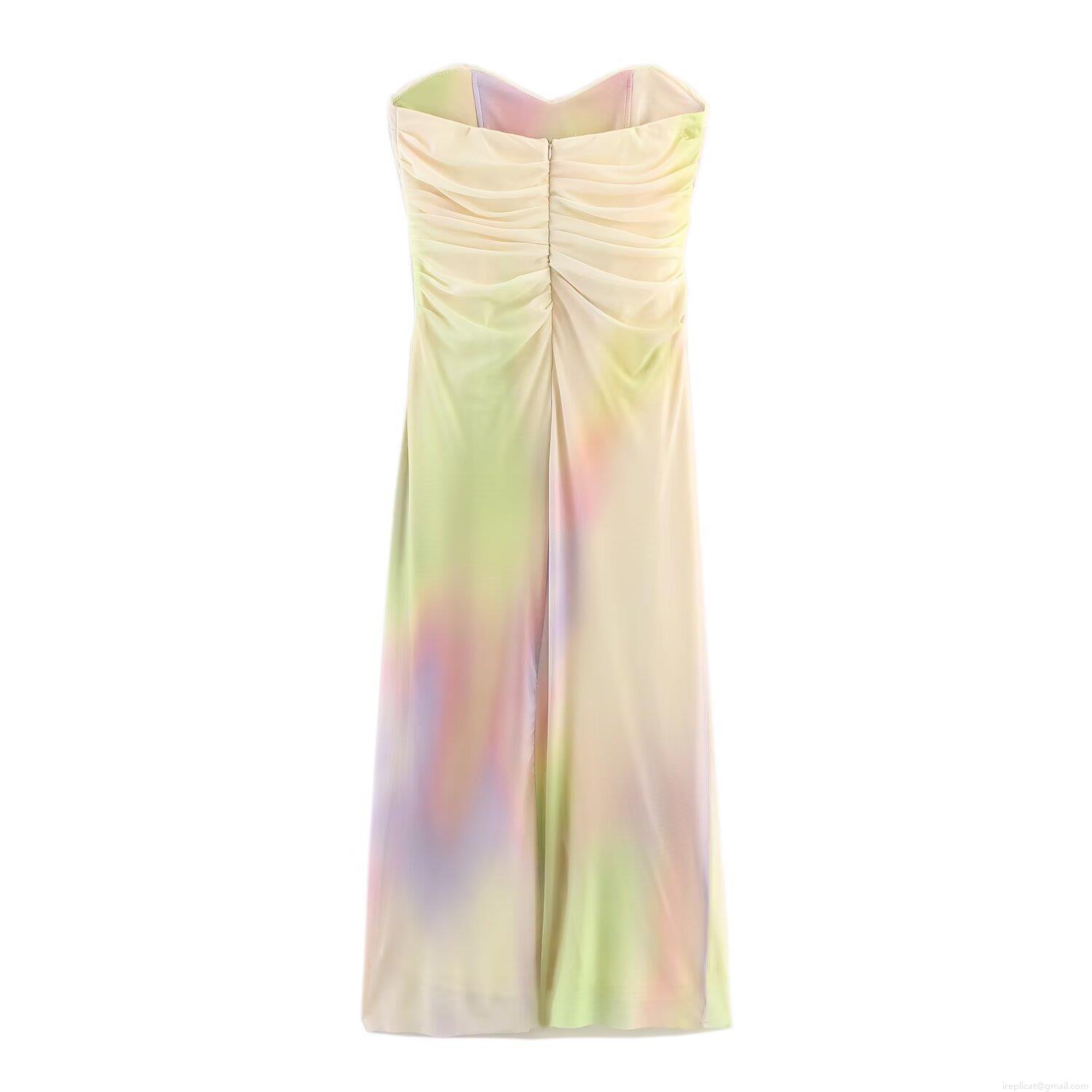 Tie Dye, Gradient, Smudge, Pleats, Strapless